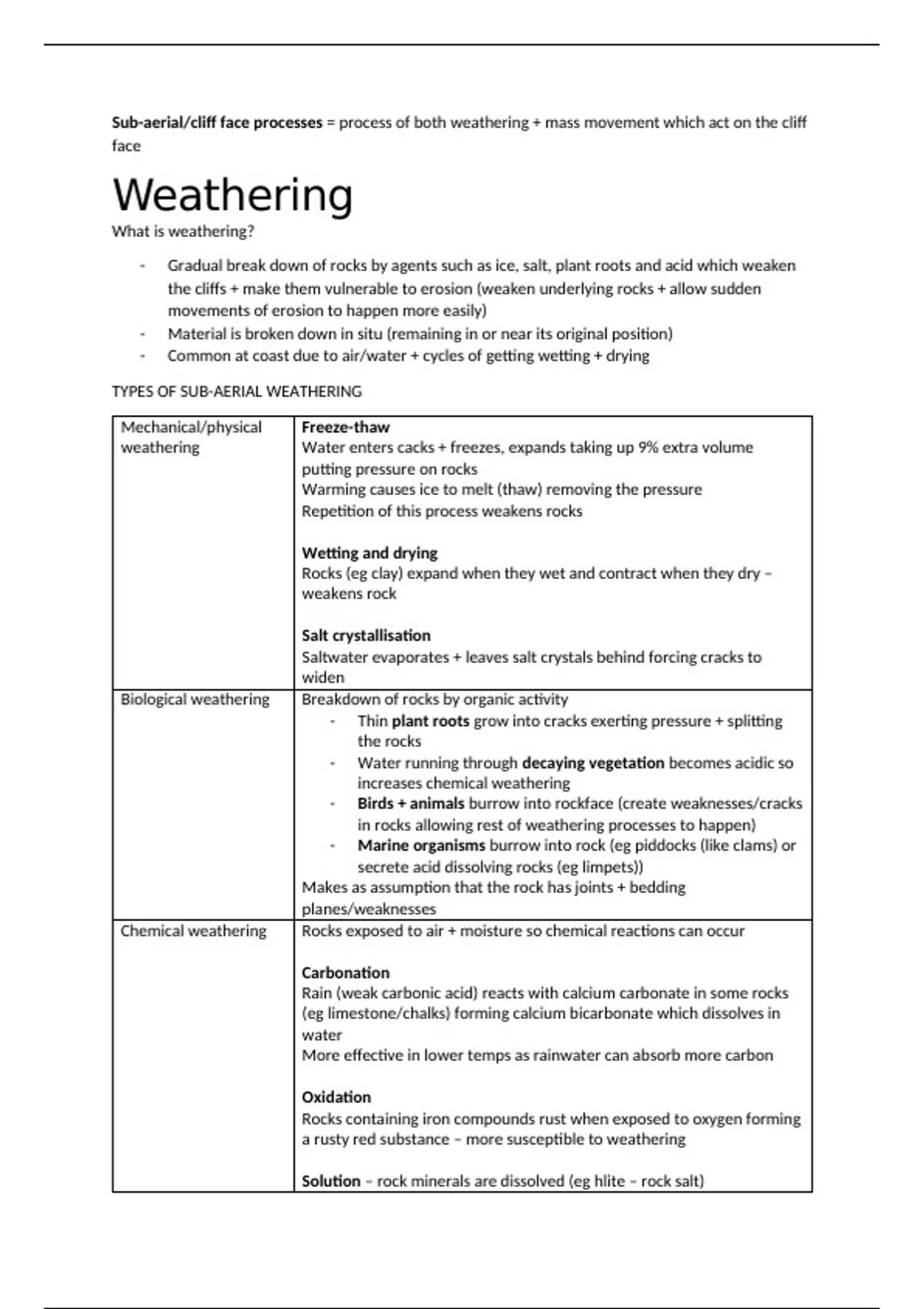 TYPES OF SUB-AERIAL WEATHERING