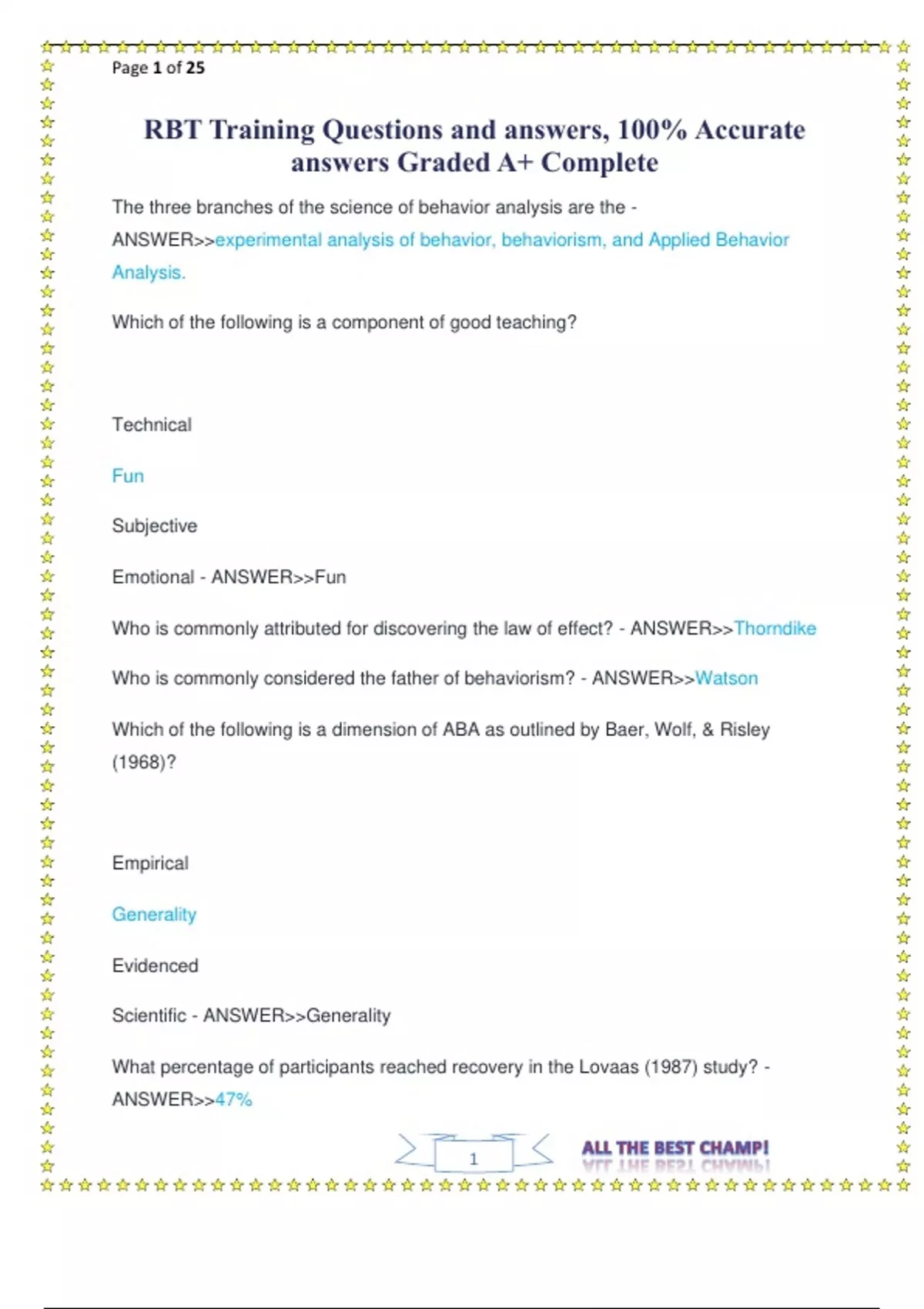 RBT Training Questions and answers, 100% Accurate answers Graded A+ Complete.