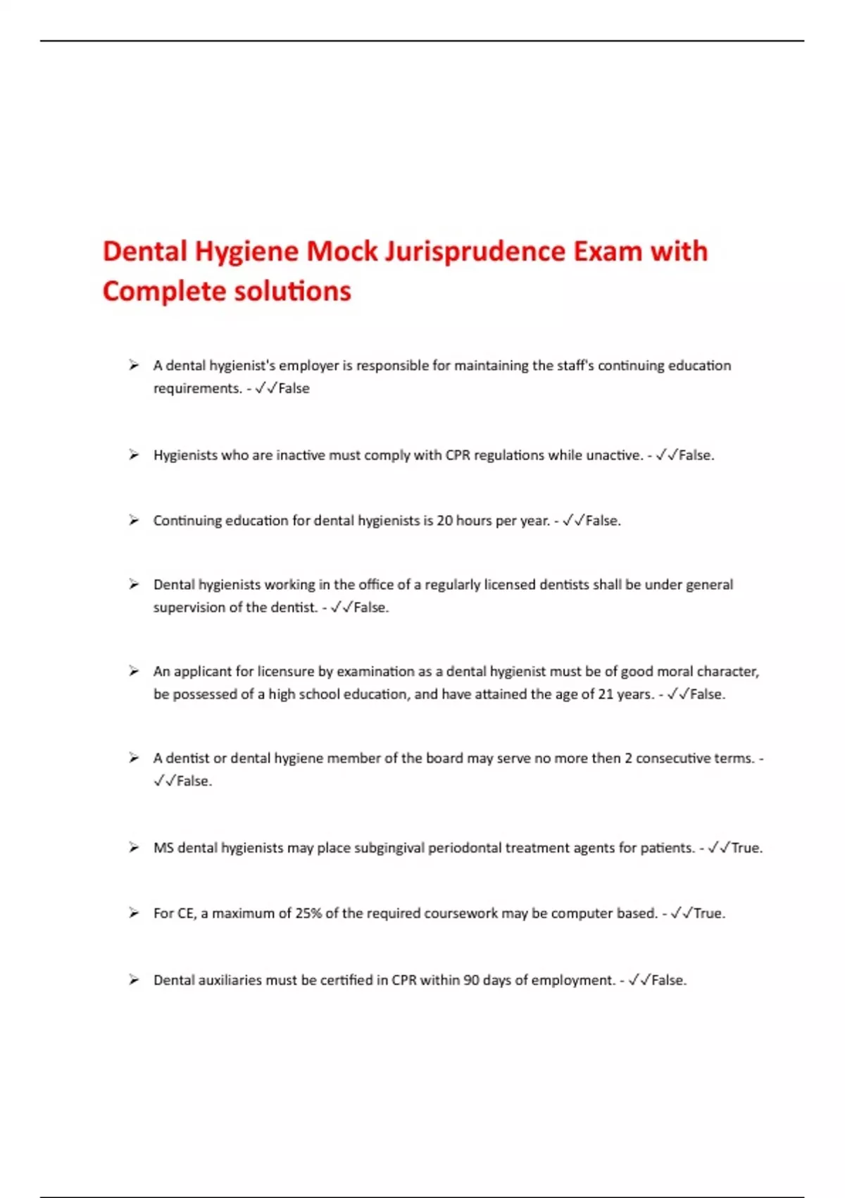 Dental Hygiene Mock Jurisprudence Exam with Complete solutions