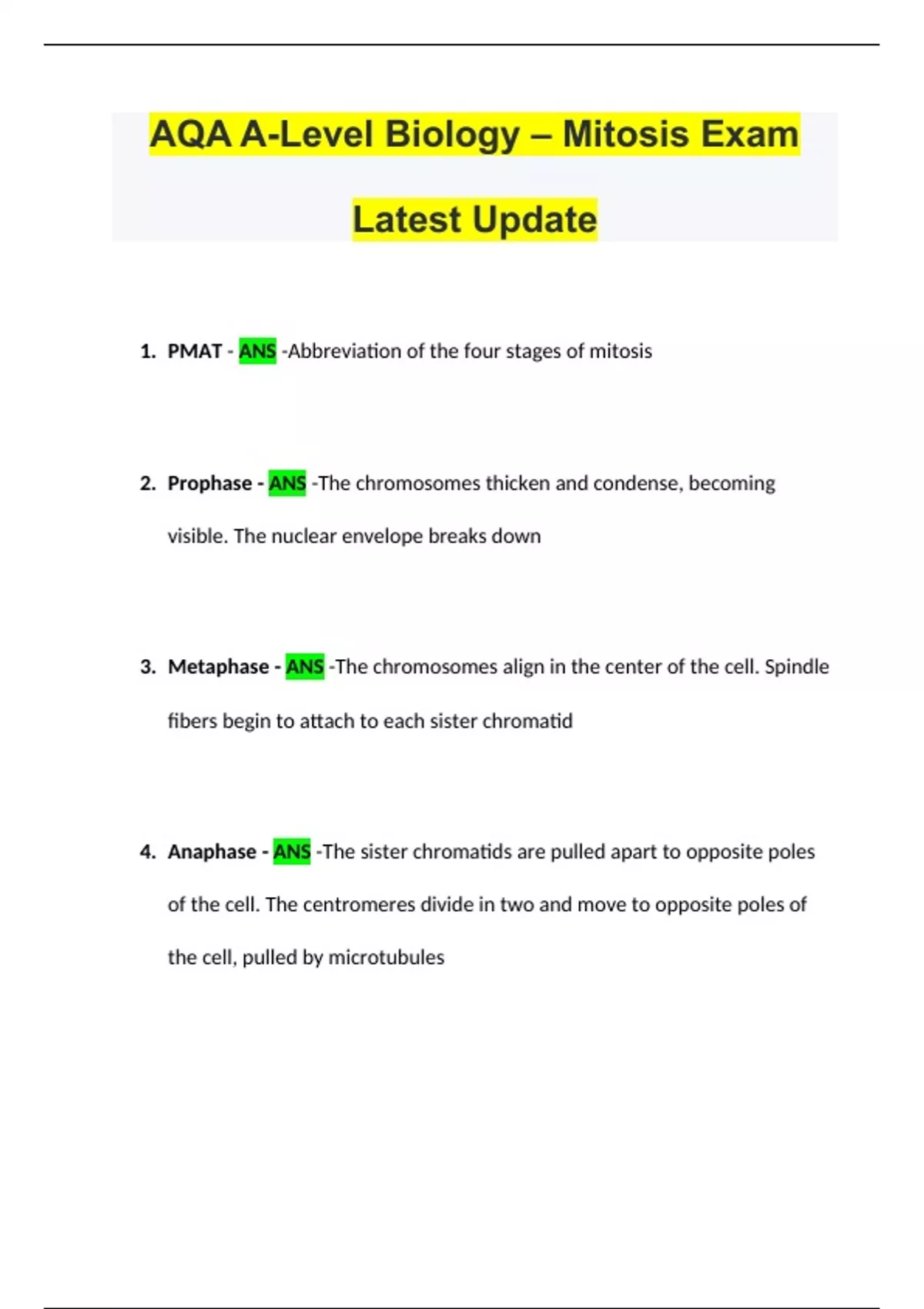 AQA A-Level Biology – Mitosis Exam Latest Update