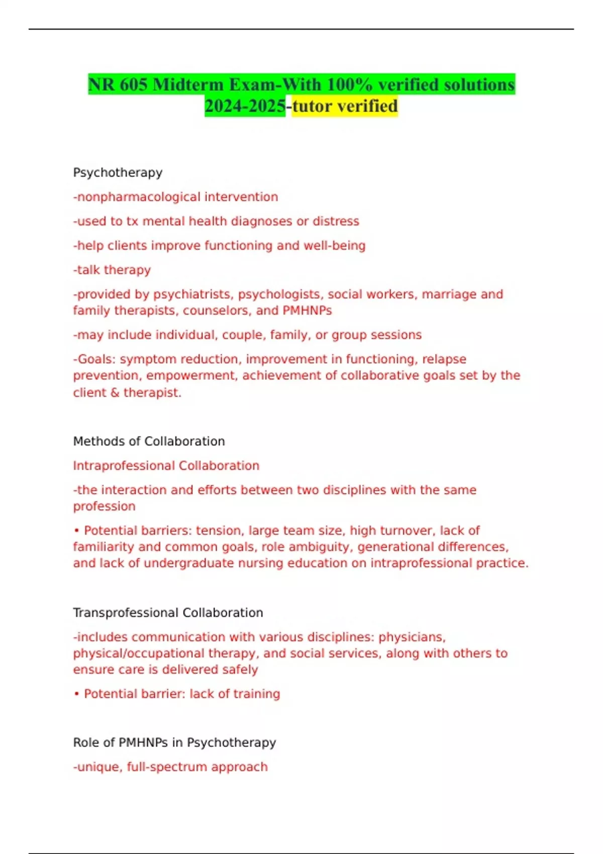 NR 605 Midterm Exam-With 100% verified solutions -tutor verified.