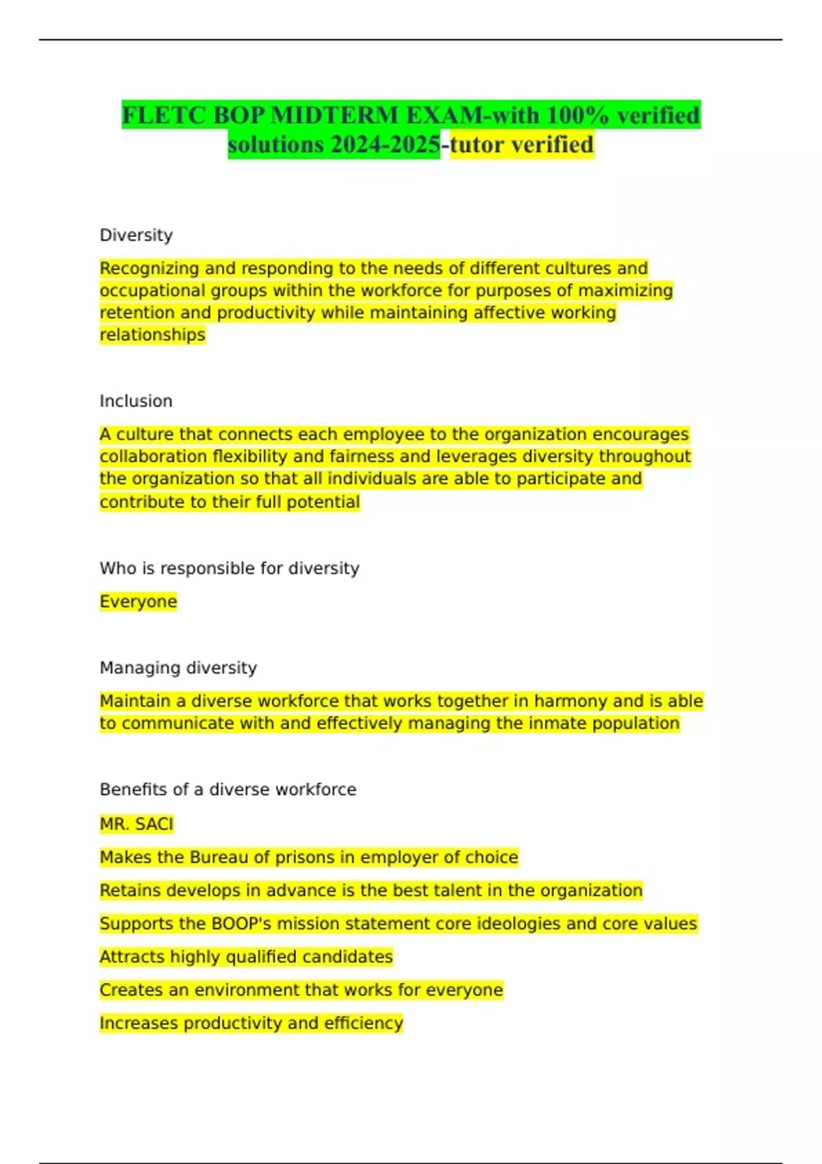 FLETC BOP MIDTERM EXAM-with 100% verified solutions -tutor verified