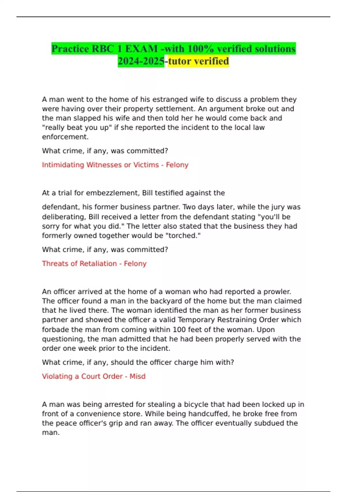 Practice RBC 1 EXAM -with 100% verified solutions -tutor verified