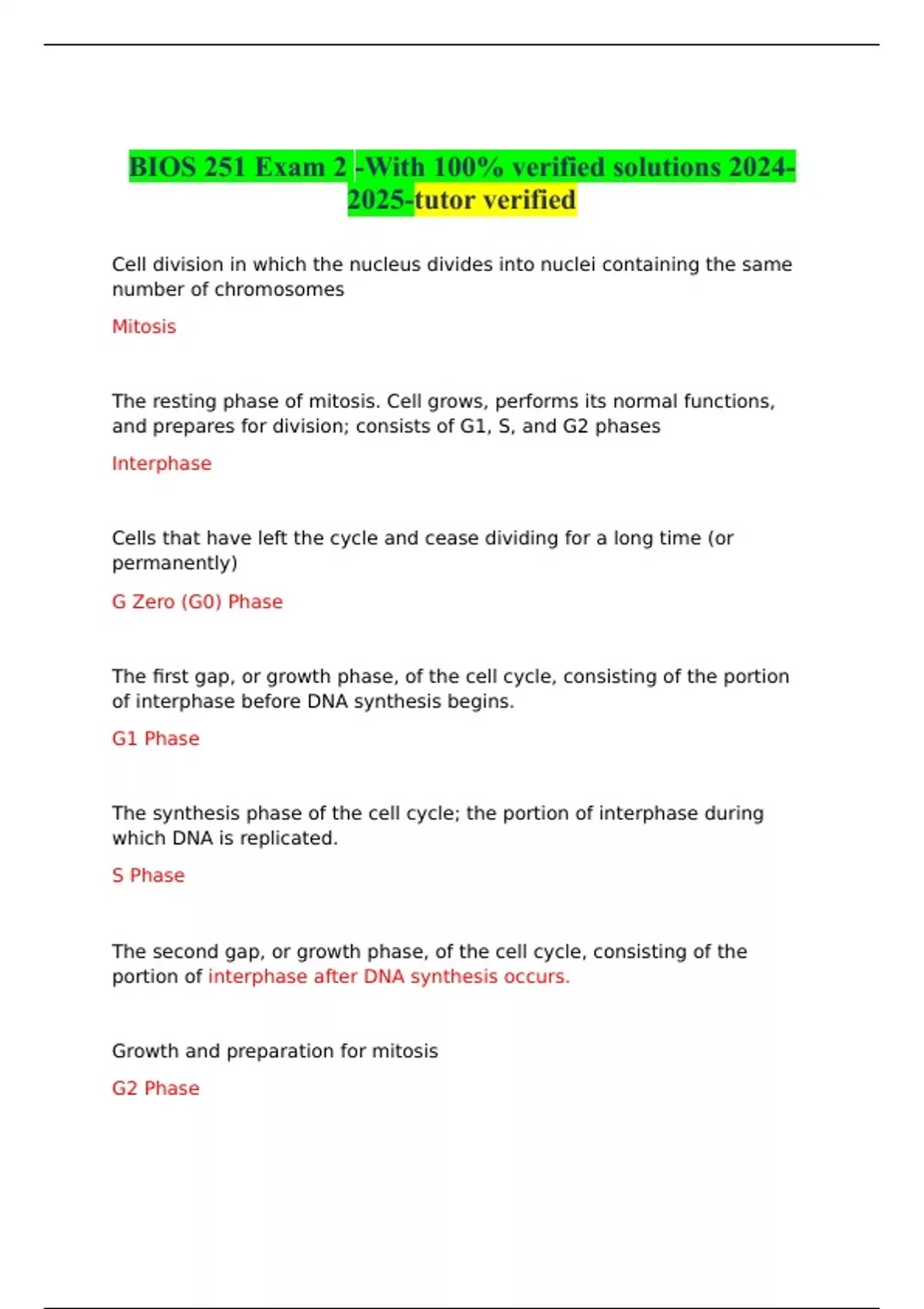 BIOS 251 Exam 2 -With 100% verified solutions -tutor ve