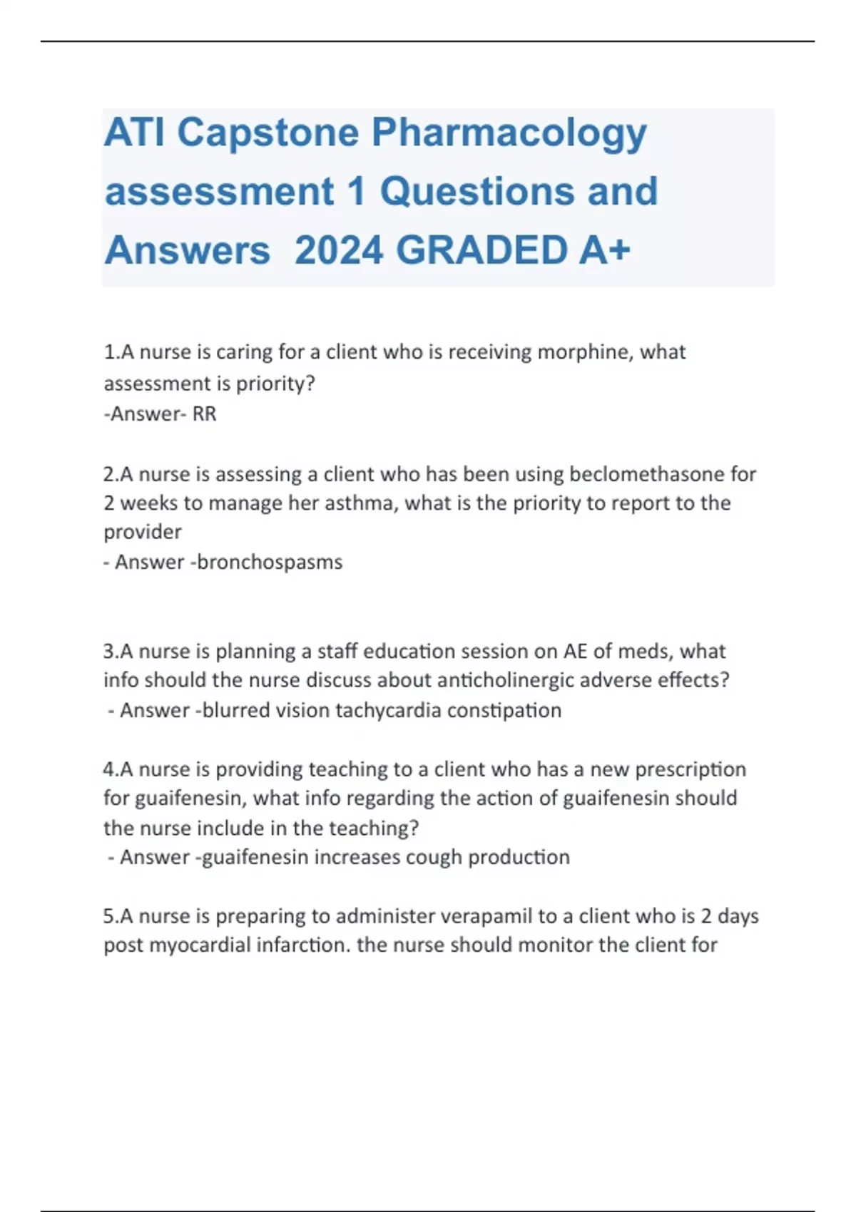 ATI Capstone Pharmacology assessment 1 Questions and Answers 2024 GRADED A+