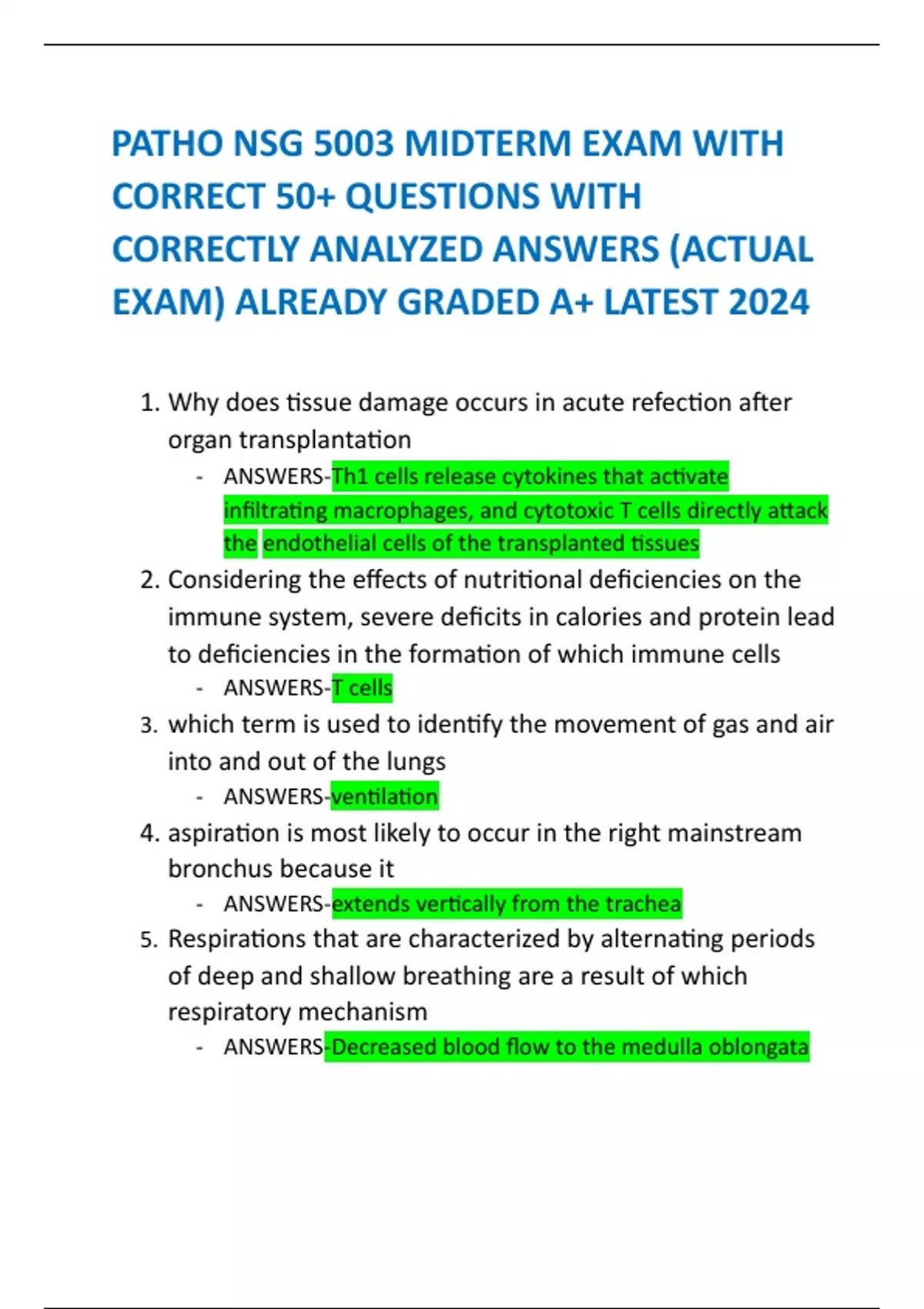PATHO NSG 5003 MIDTERM EXAM WITH CORRECT 50+ QUESTIONS WITH CORRECTLY ANALYZED ANSWERS (ACTUAL EXAM) ALREADY GRADED A+ LATEST 2024