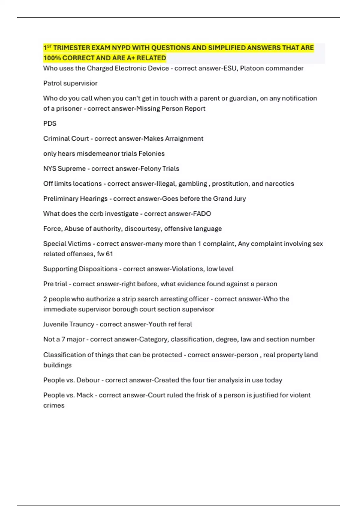 1ST TRIMESTER EXAM NYPD WITH QUESTIONS AND SIMPLIFIED ANSWERS THAT ARE 100% CORRECT AND ARE A+ RATED