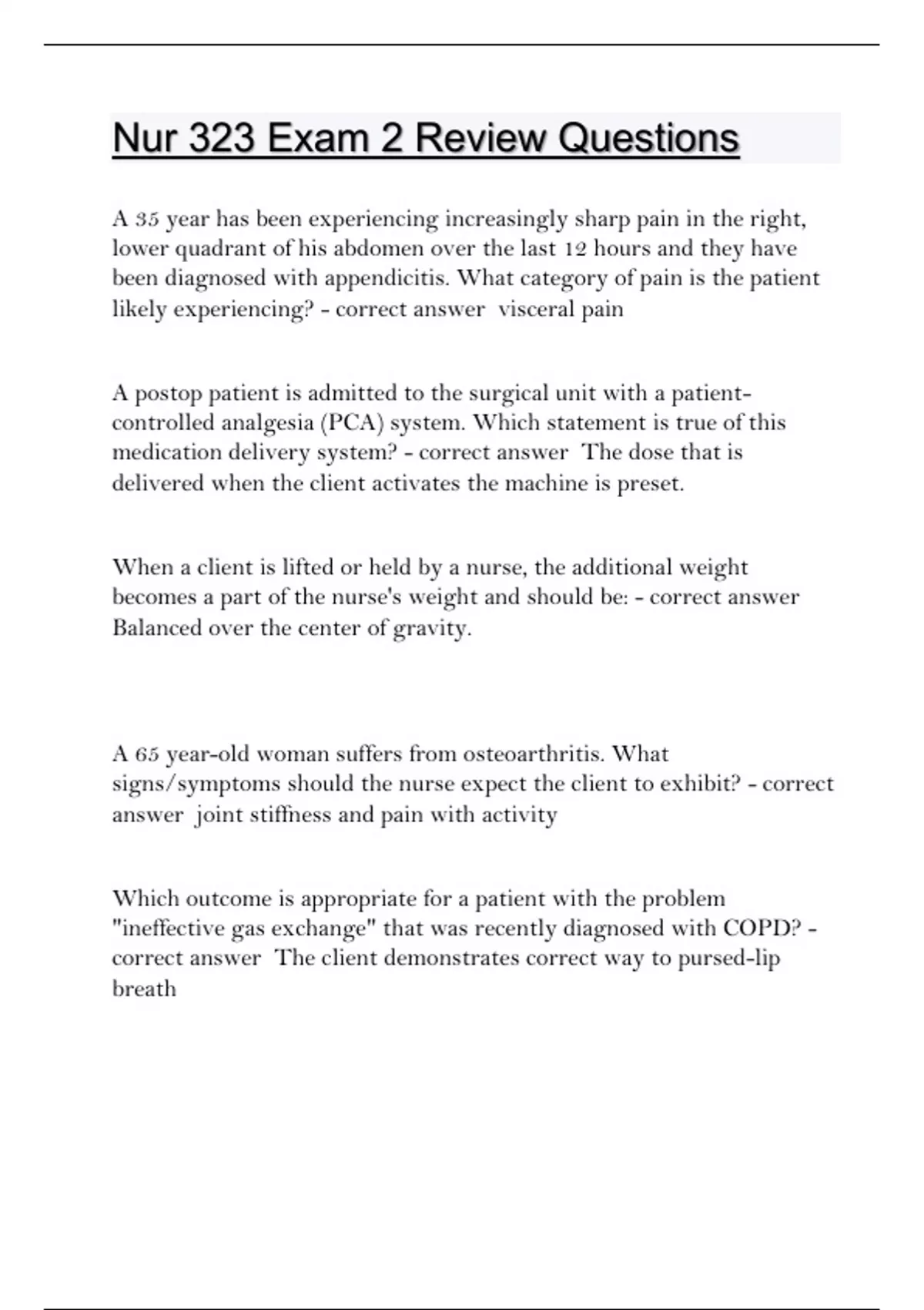 Nur 323 Exam 2 Review Questions Correct Answers Latest Update 2024