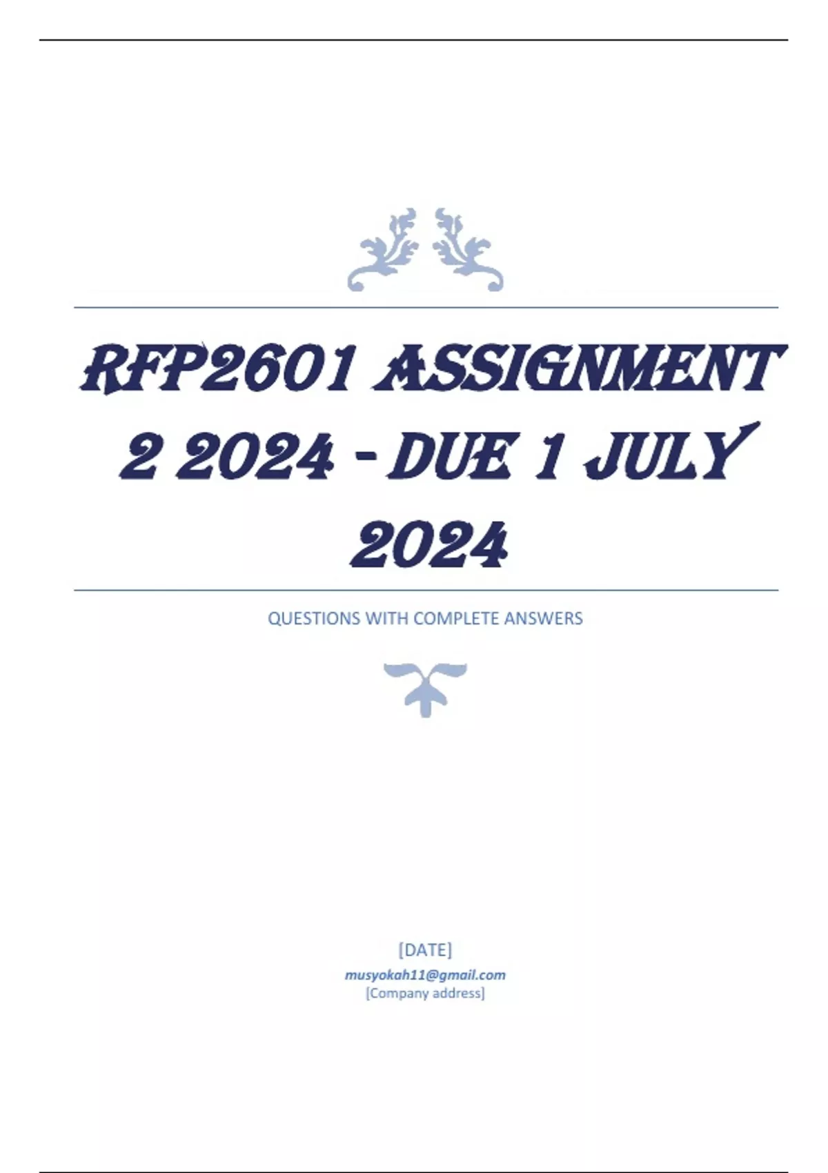 RFP2601 Assignment 2 2024 QUESTIONS WITH ANSWERS
