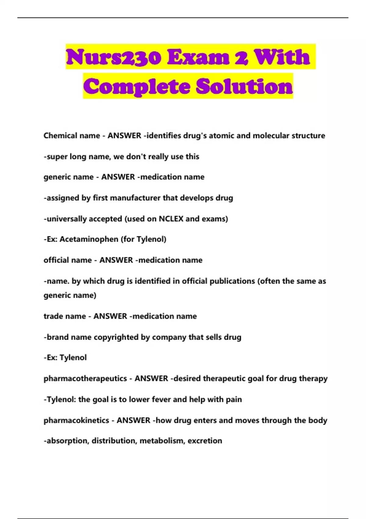 Nurs230 Exam 2 With Complete Solution...