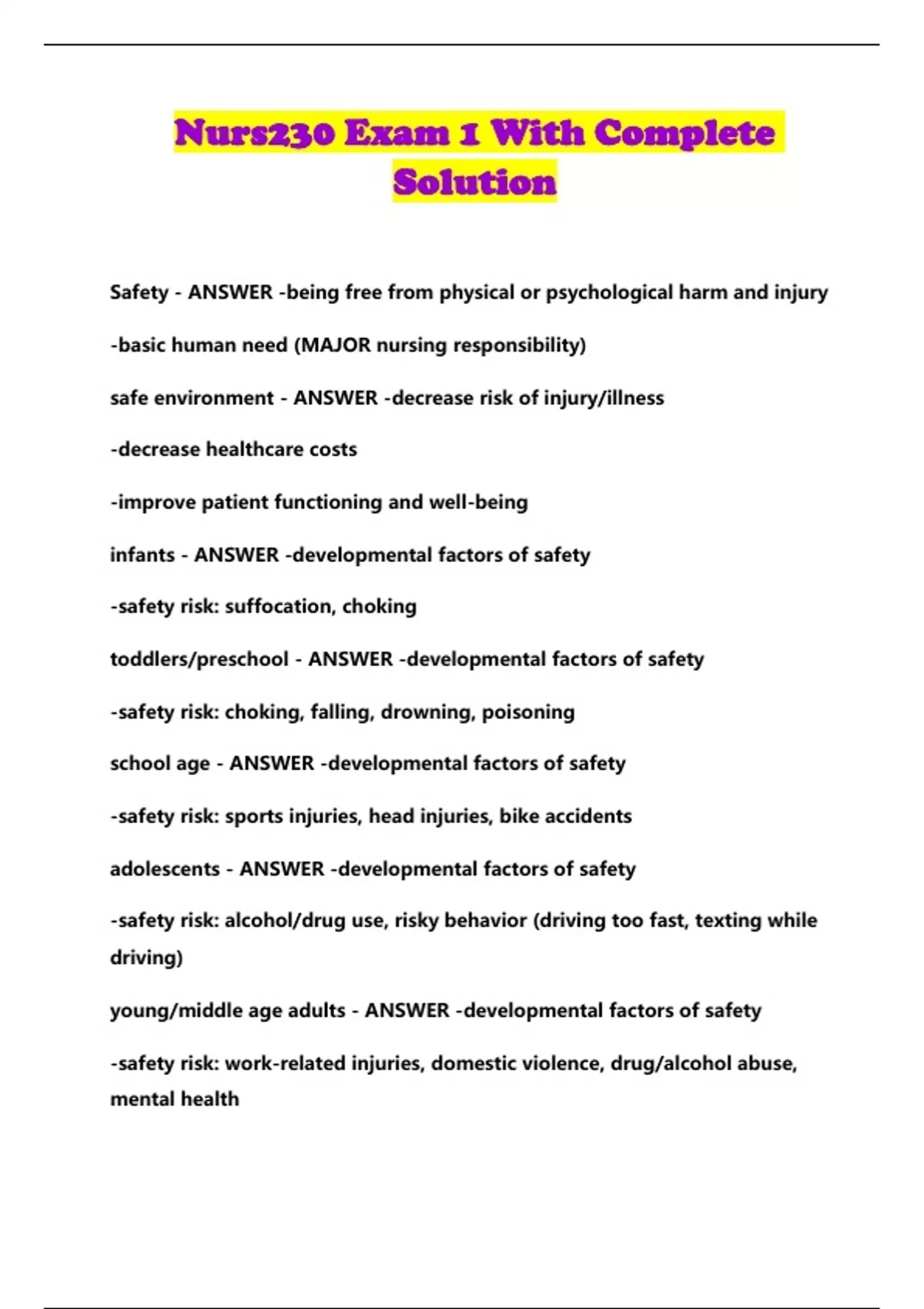 Nurs230 Exam 1 With Complete Solution