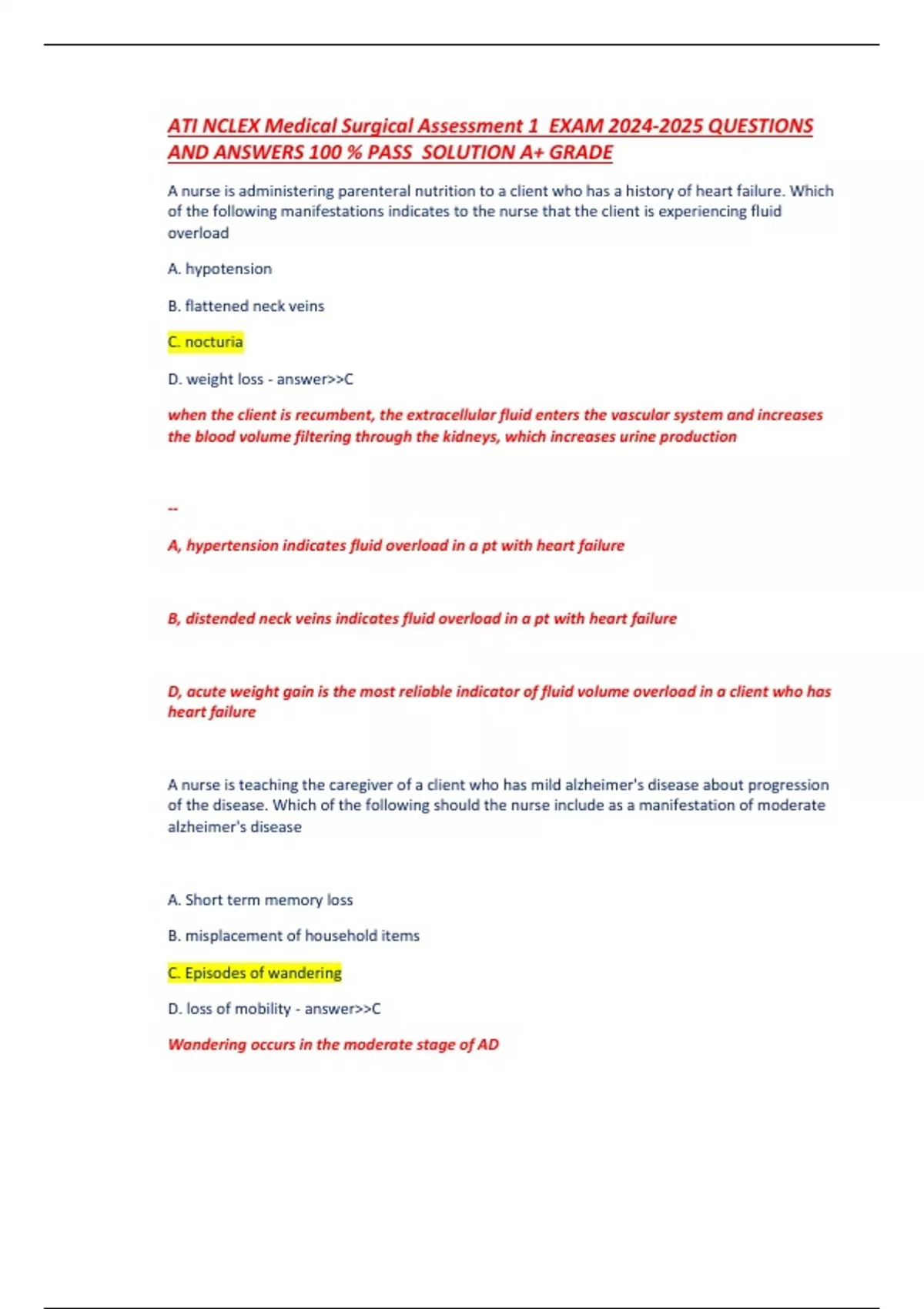 ATI NCLEX Medical Surgical Assessment 1 EXAM QUESTIONS AND ANSWERS 100 % PASS SOLUTION A+ GRADE