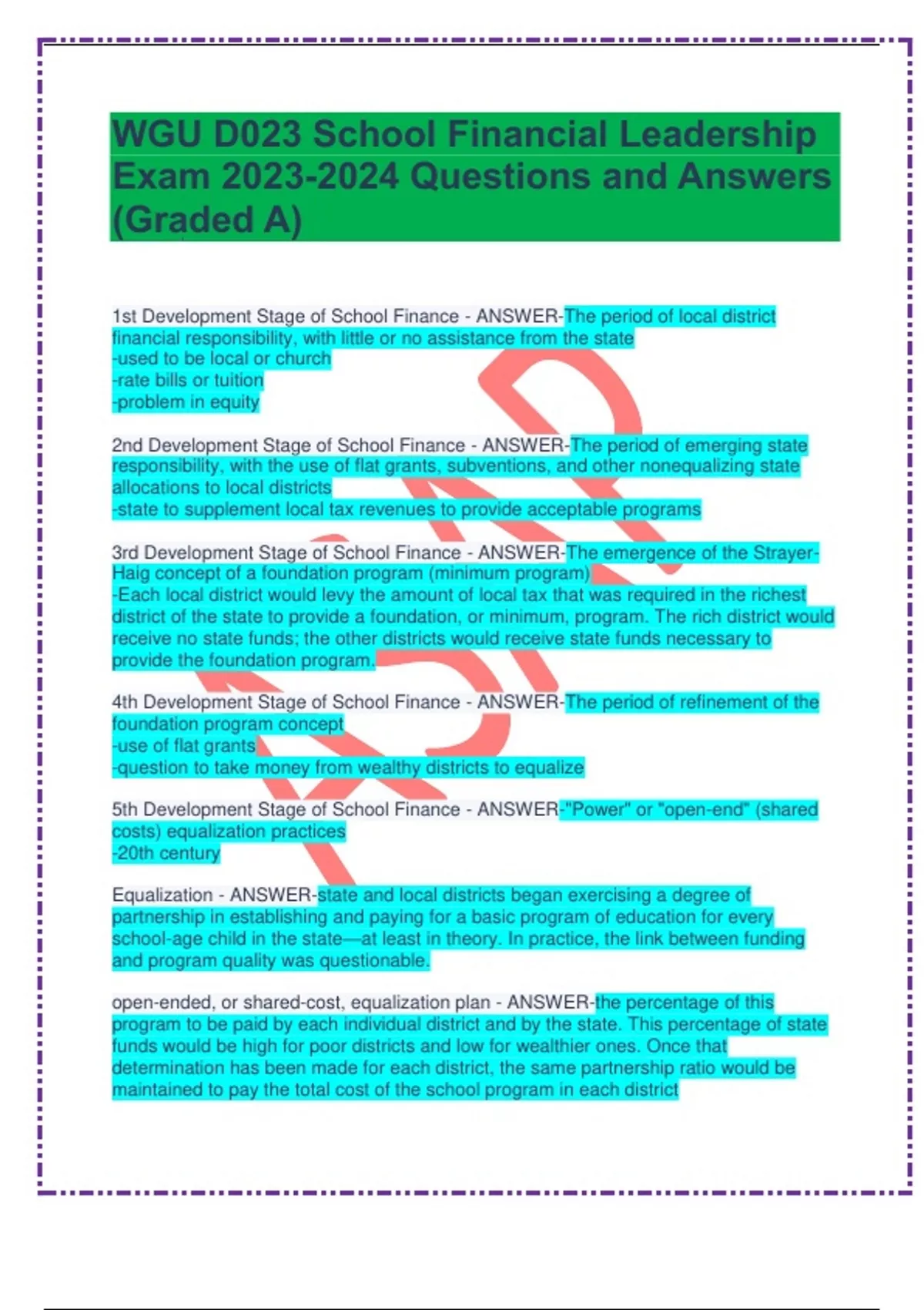 WGU D023 School Financial Leadership questions and answers 100% correct