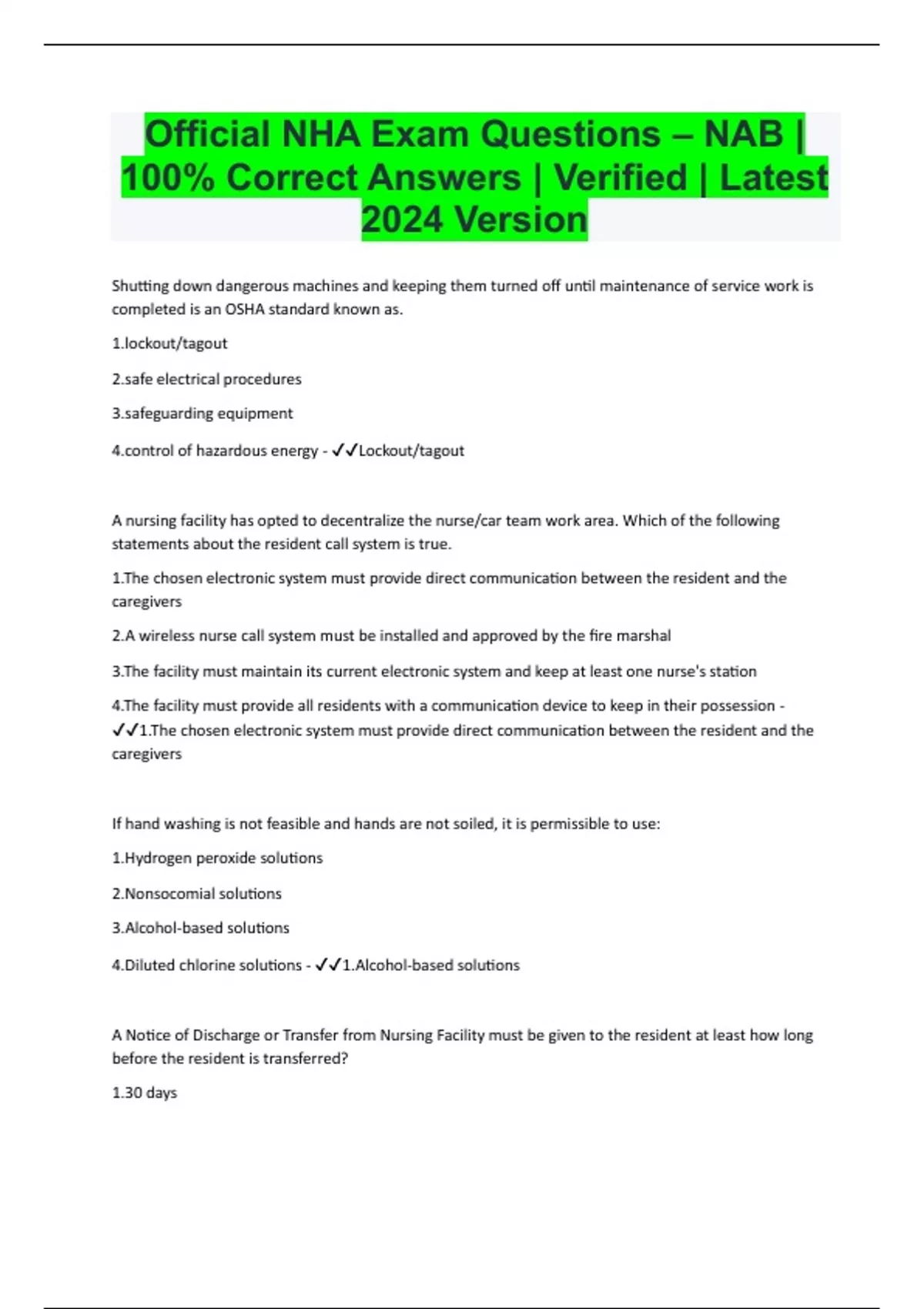 Official NHA Exam Questions – NAB | 100% Correct Answers | Verified | Latest 2024 Version