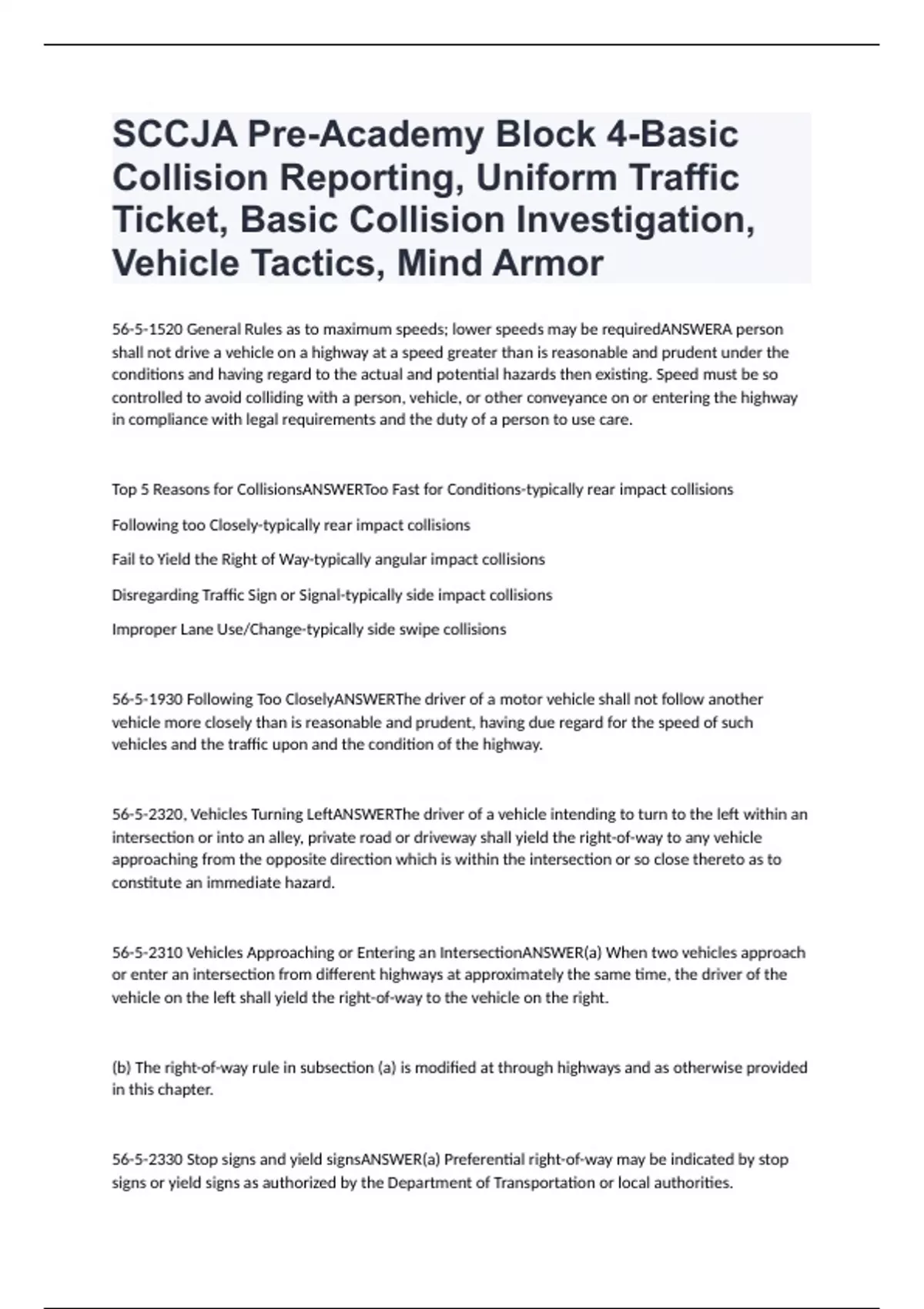 SCCJA Pre-Academy Block 4-Basic Collision Reporting, Uniform Traffic Ticket, Basic Collision Investigation, Vehicle Tactics, Mind Armor Exam Questions With Verified Answers