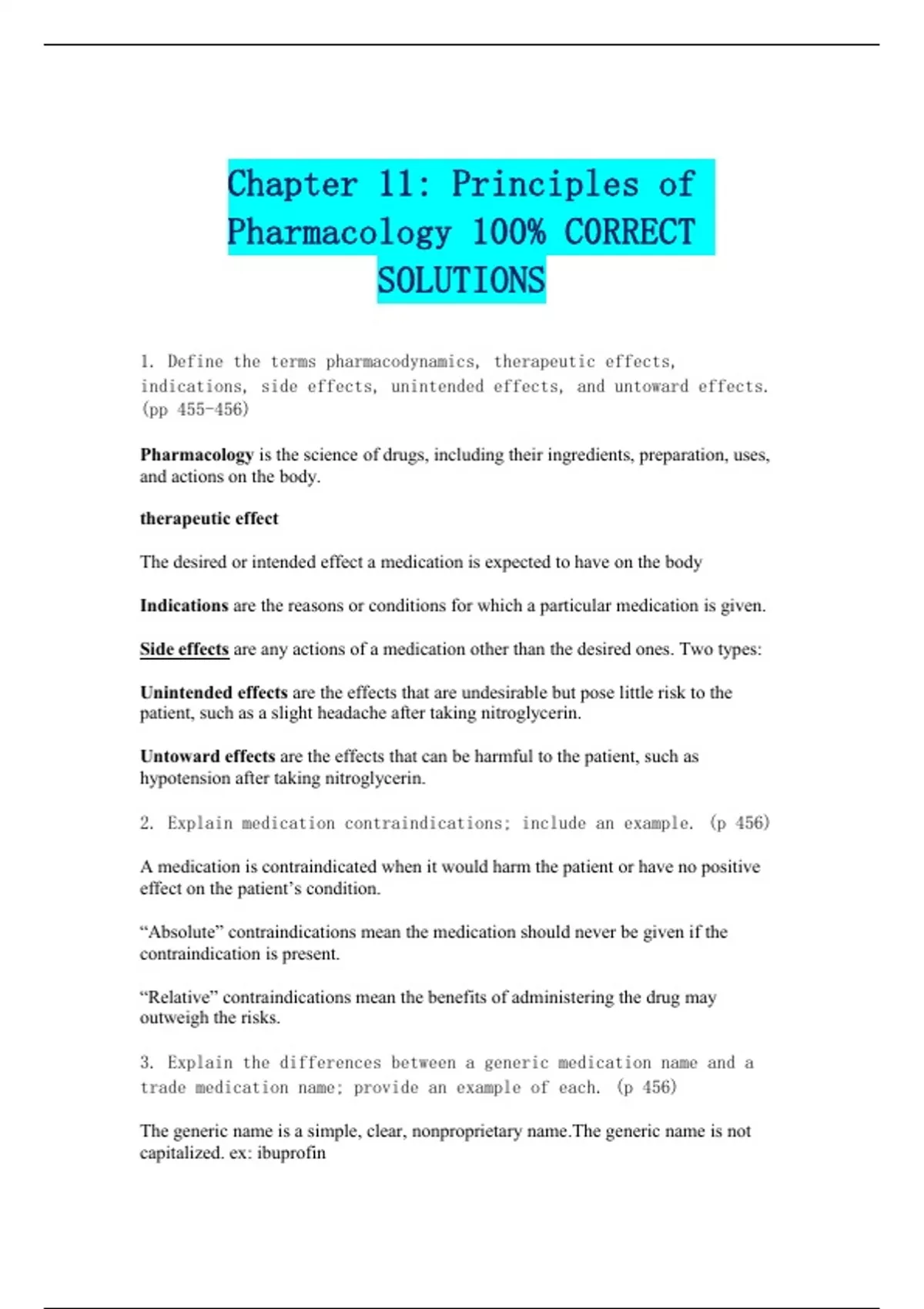 Chapter 11: Principles of Pharmacology 100% C0RRECT SOLUTIONS
