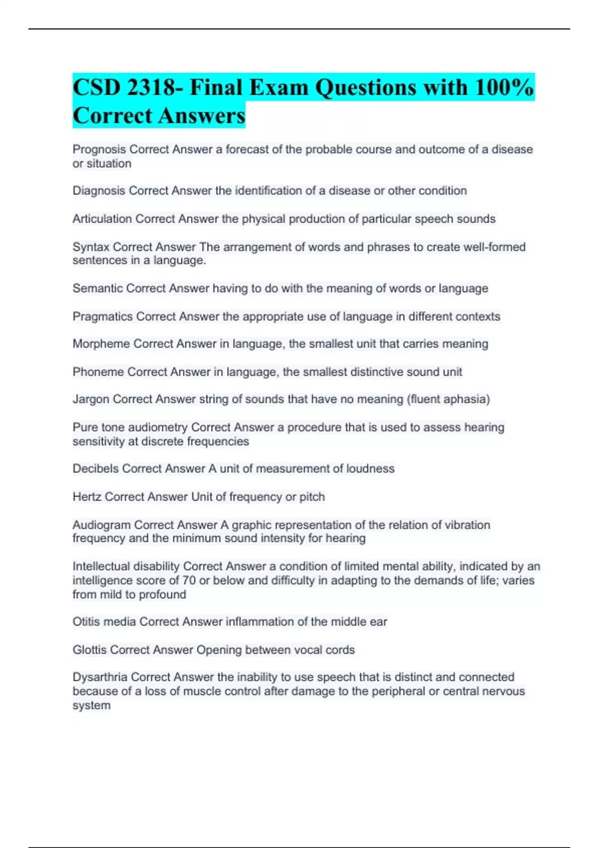 CSD 2318- Final Exam Questions with 100% Correct Answers