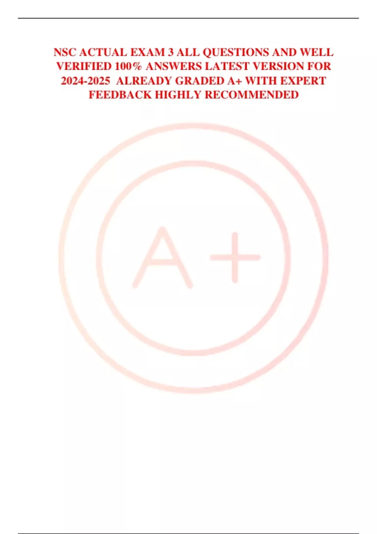 NSC ACTUAL EXAM 3 ALL QUESTIONS AND WELL VERIFIED 100% ANSWERS LATEST VERSION FOR ALREADY GRADED A+ WITH EXPERT FEEDBACK HIGHLY RECOMMENDED