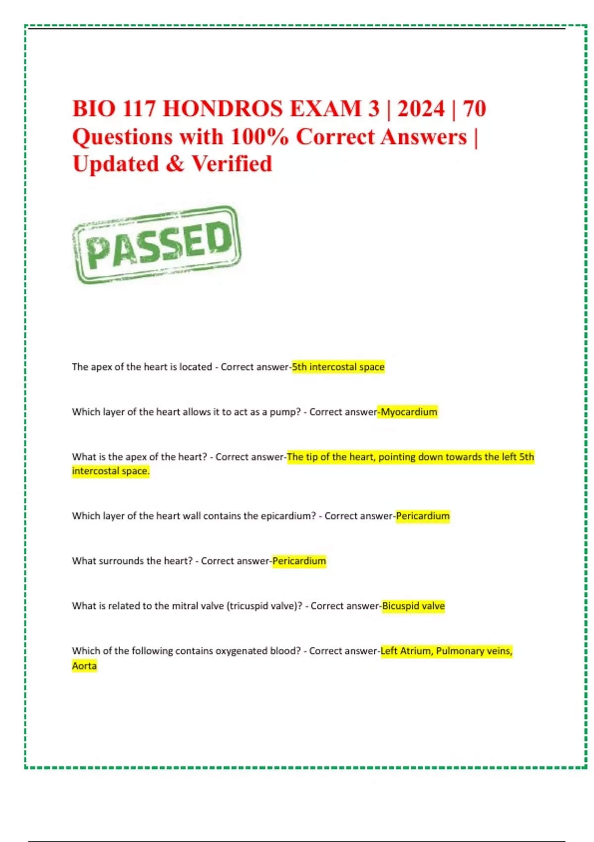 BIO 117 HONDROS EXAM 3 | 2024| 70 Questions with 100% Correct Answers | Updated & Verified