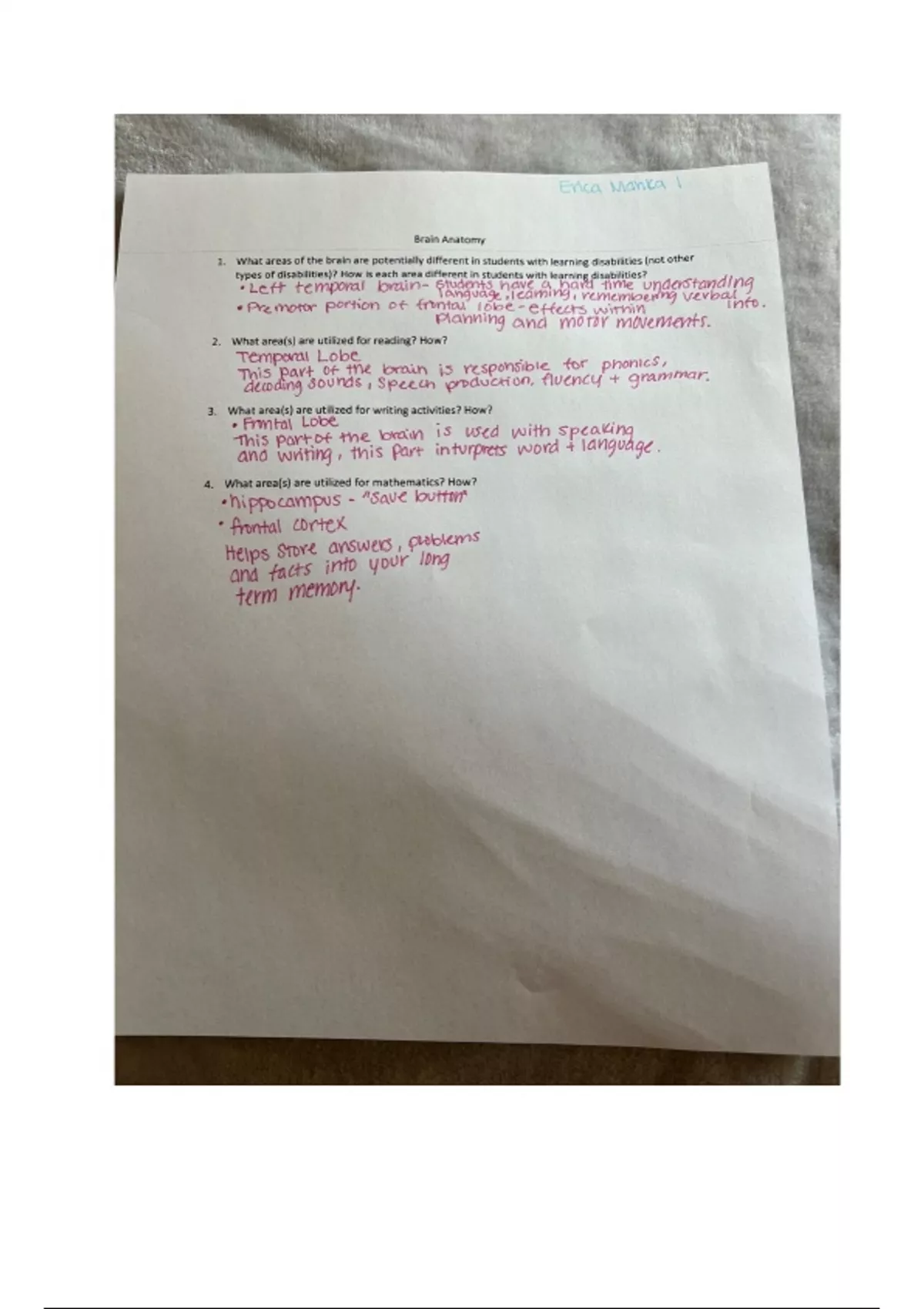 Brain anatomy spec ed notes