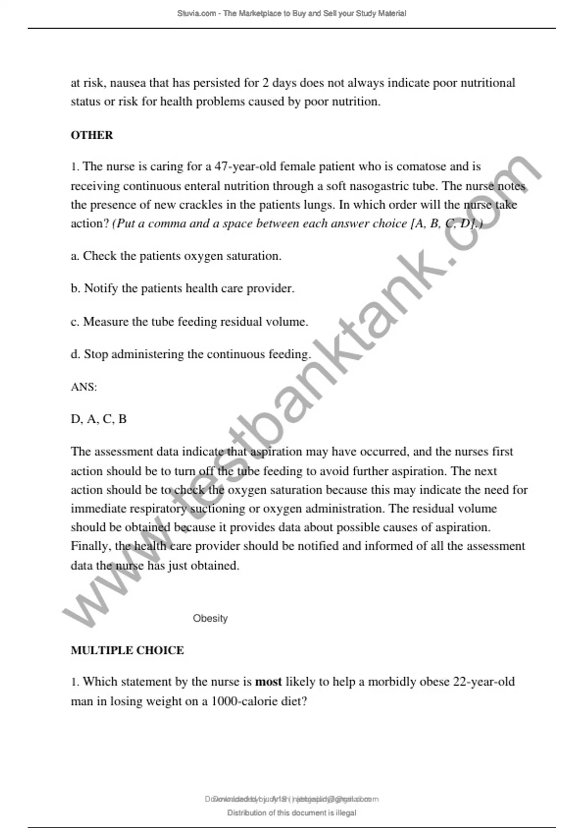 Exam of 10 pages for the course medical surgical at Missouri Southern State University (45 Obesity)