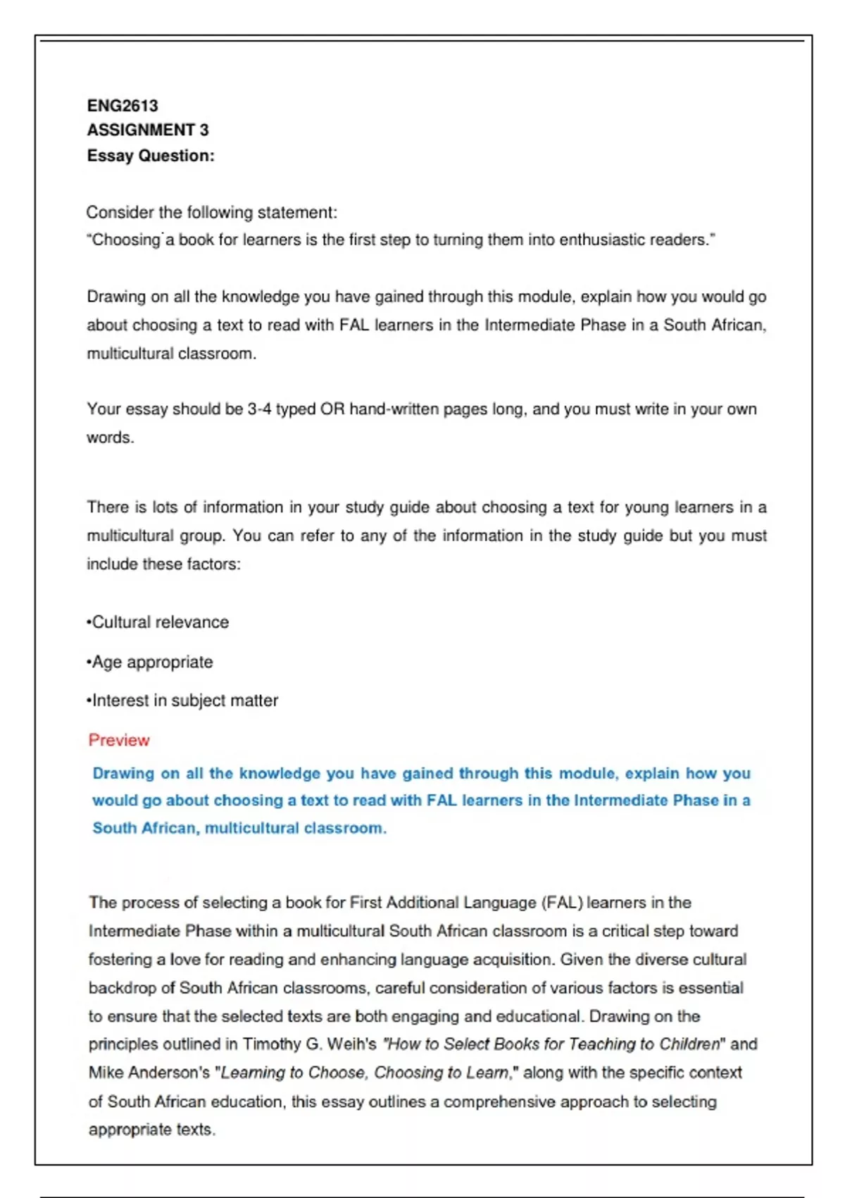 about choosing a text to read with FAL learners in the Intermediate Phase in a South African,
