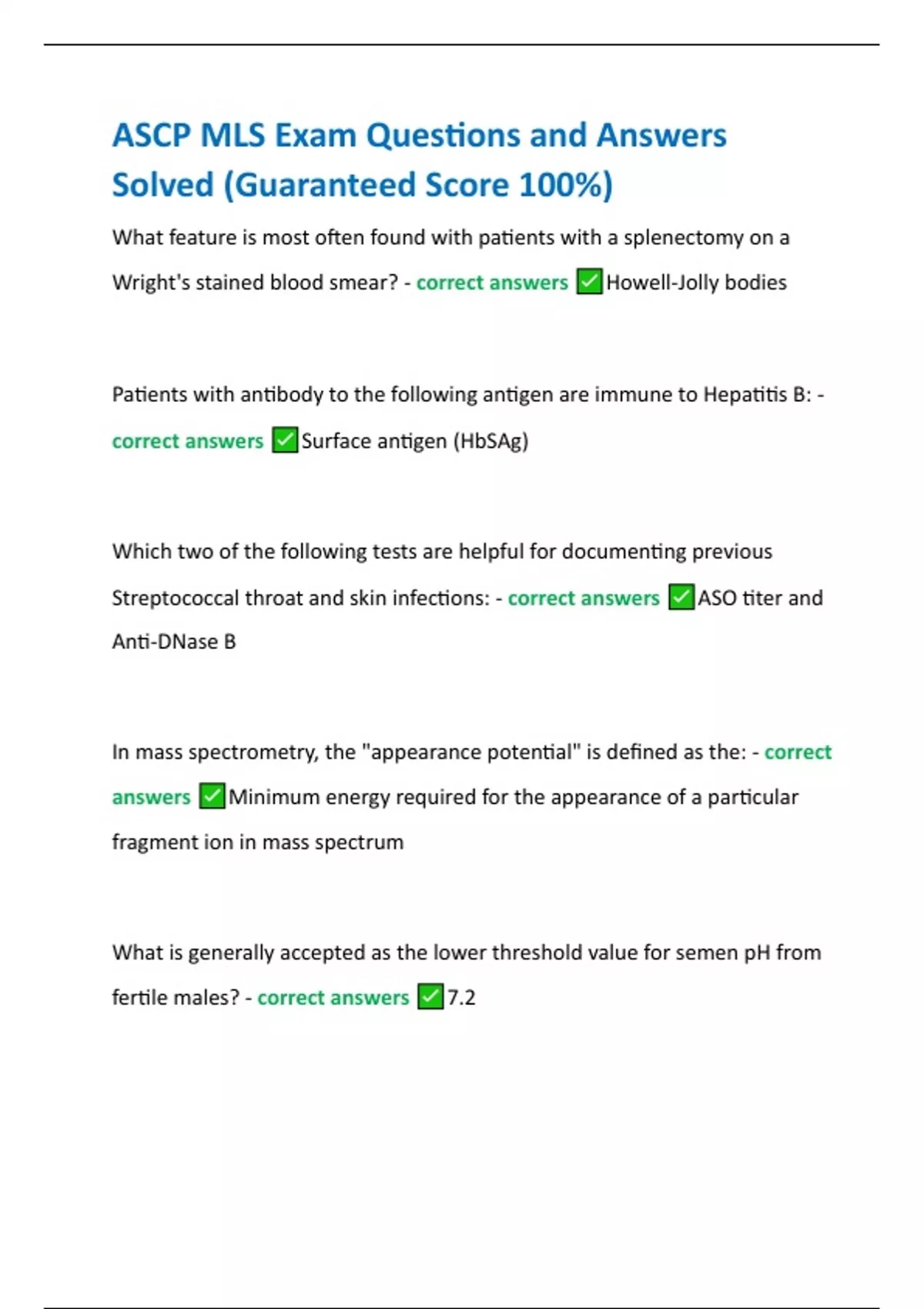 - ASCP MLS Exa Quesions and Aswers Slved (Guara