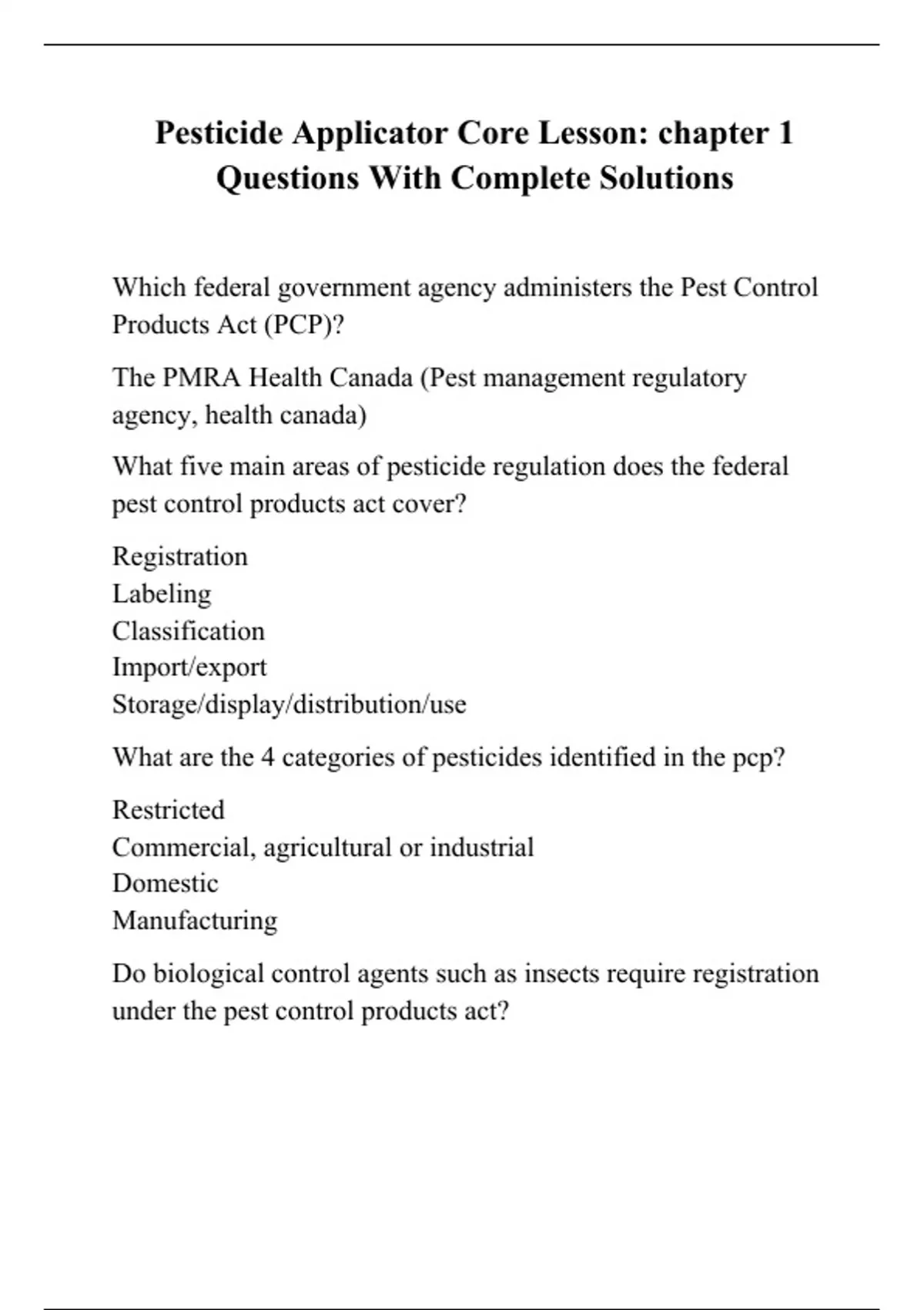 Pesticide Applicator Core Lesson: chapter 1 Questions With Complete Solutions