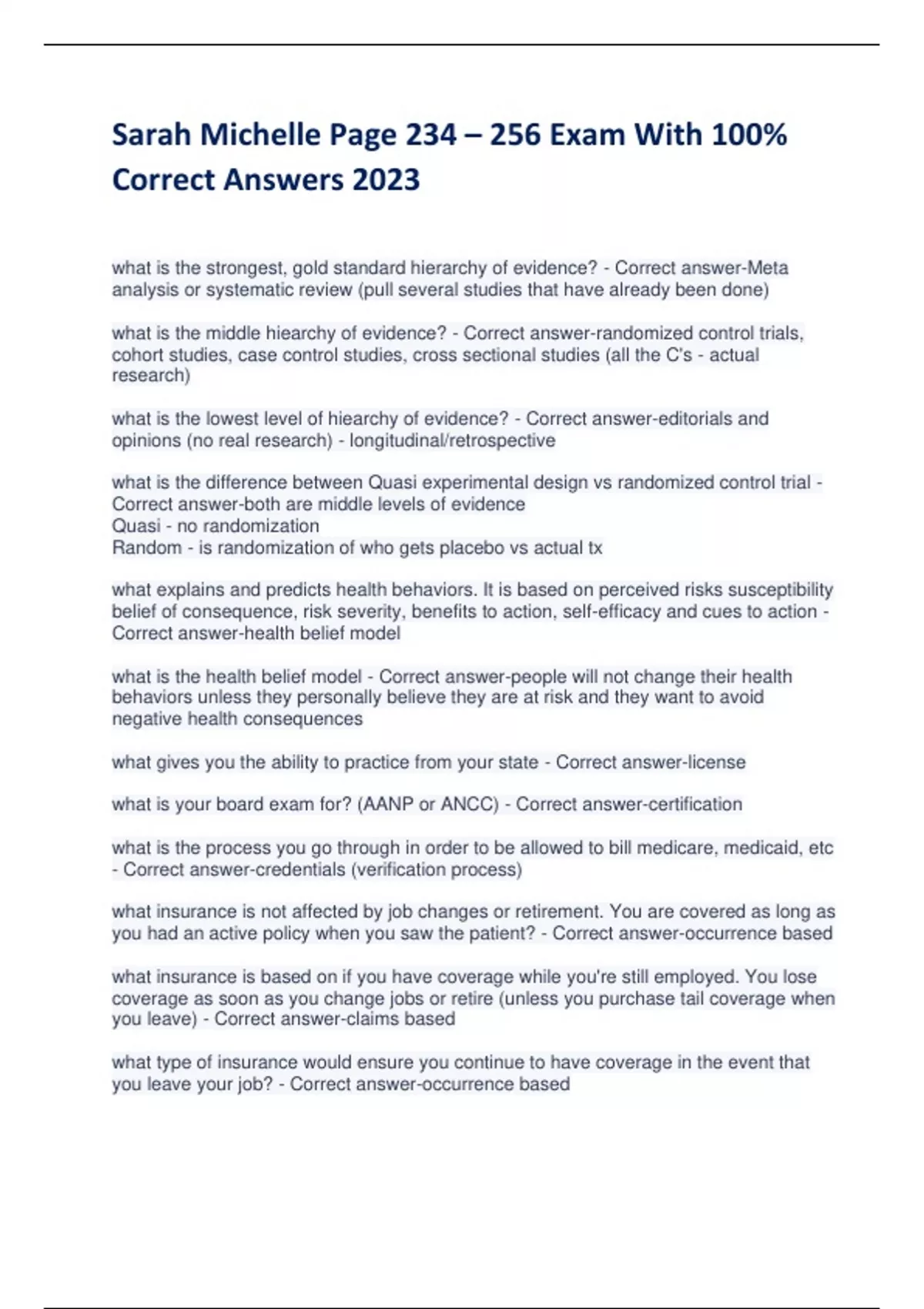 Sarah Michelle Page 234 – 256 Exam With 100% Correct Answers 2023