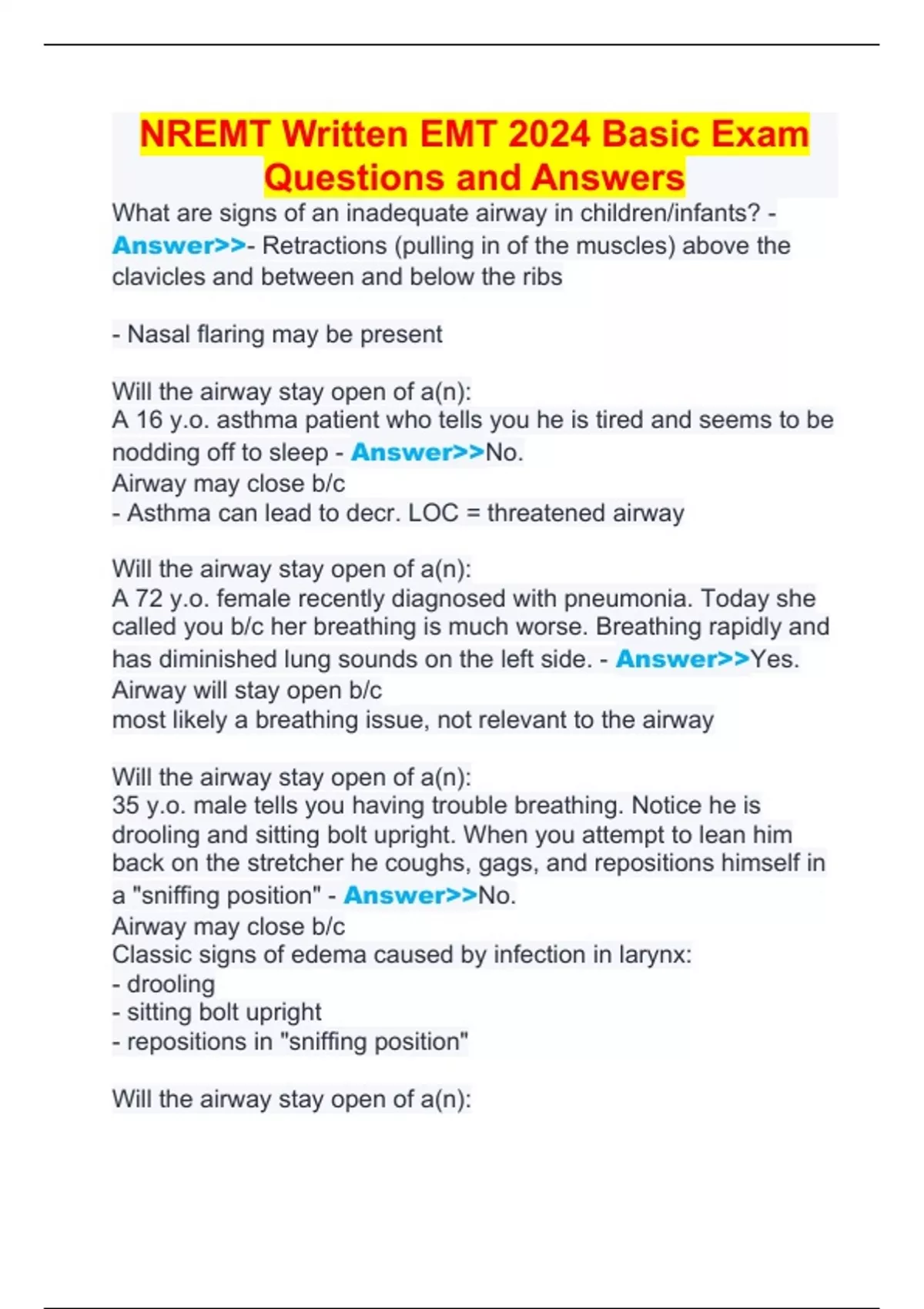 NREMT Written EMT 2024 Basic Exam Questions and Answers