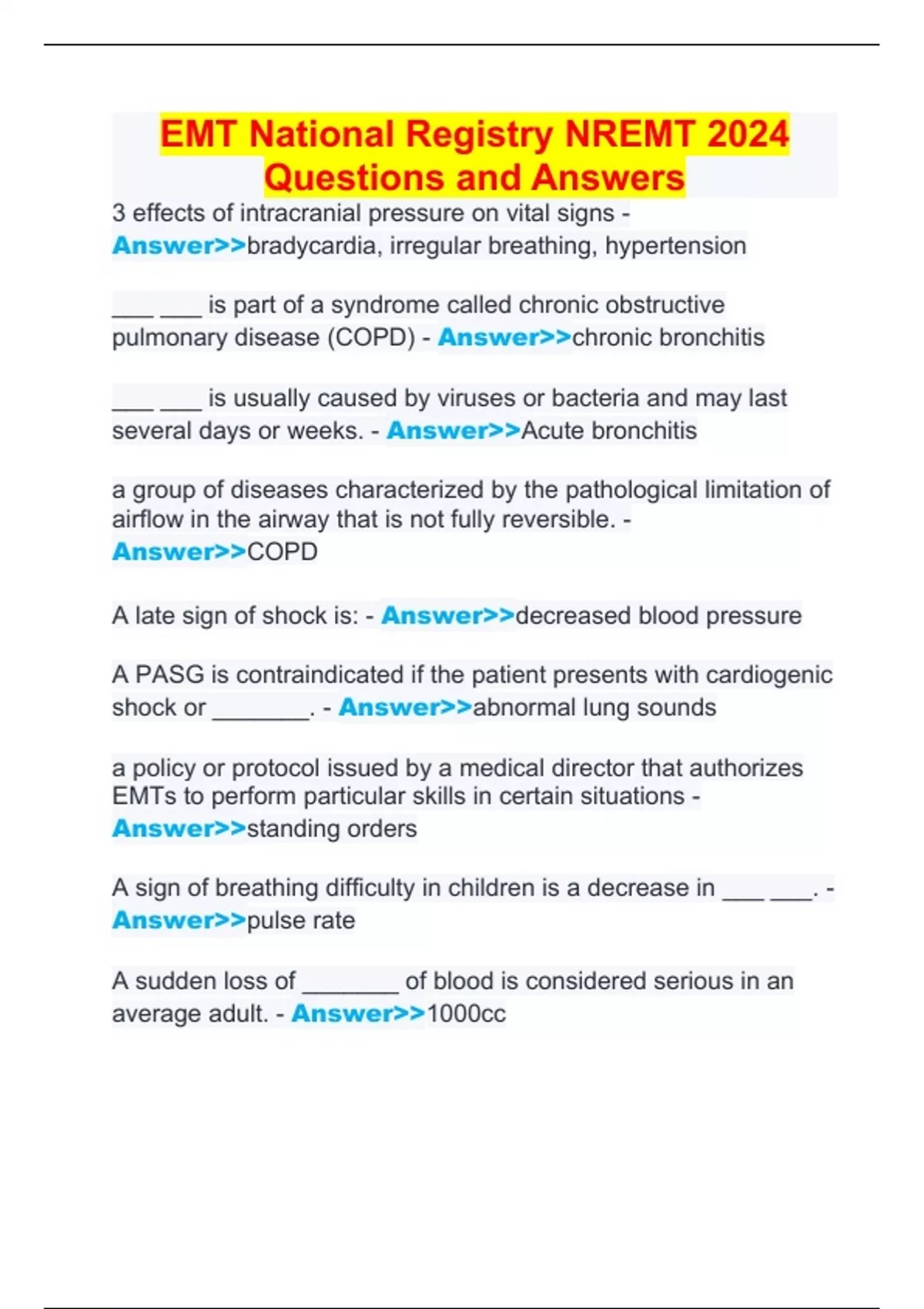 EMT National Registry NREMT 2024 Questions and Answers