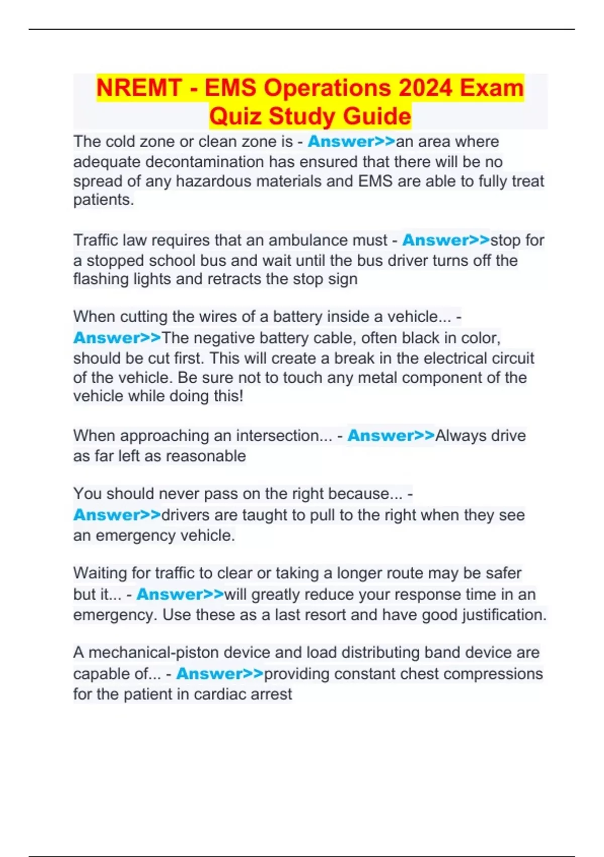 NREMT - EMS Operations 2024 Exam Quiz Study Guide