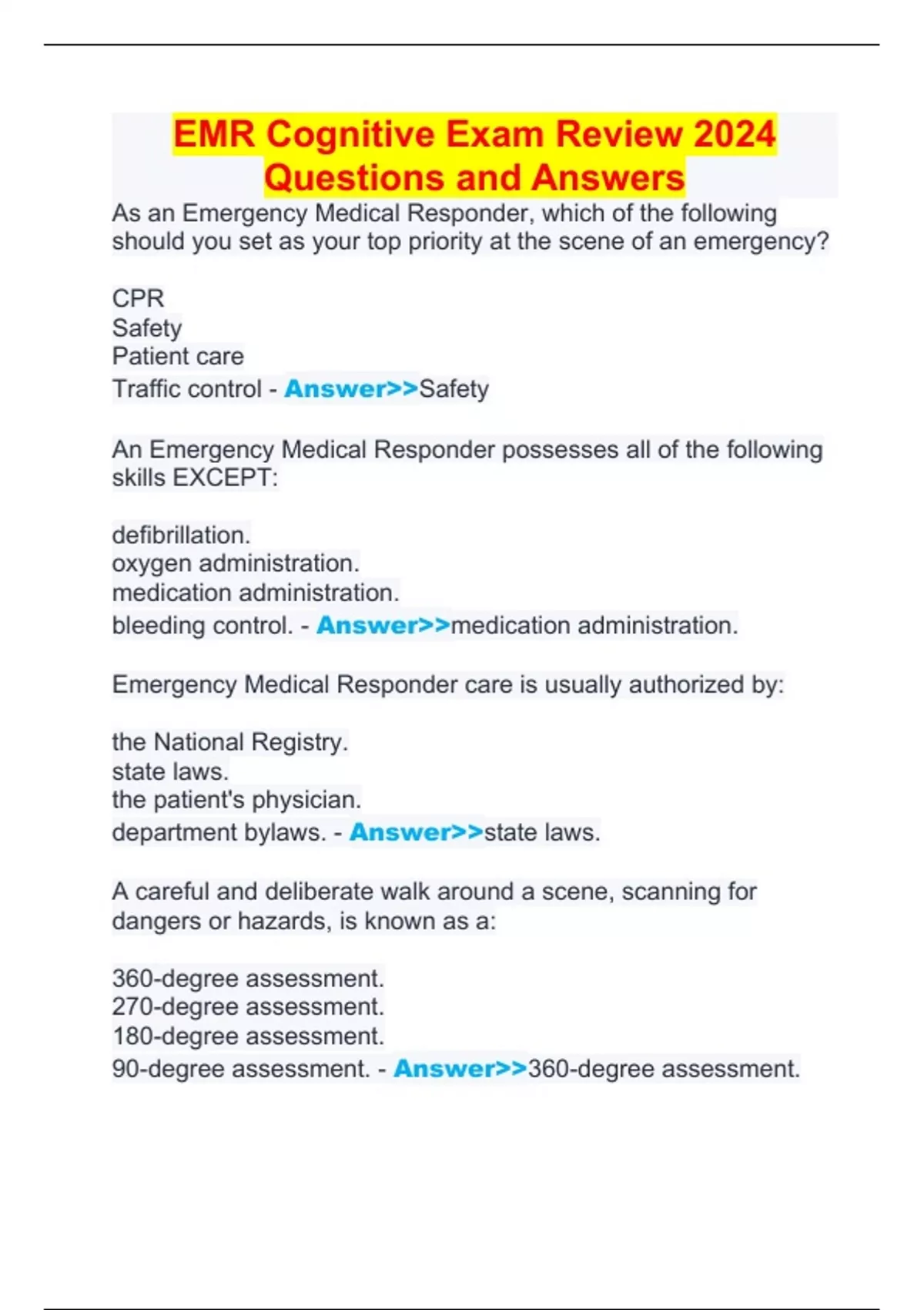 EMR Cognitive Exam Review 2024 Questions and Answers
