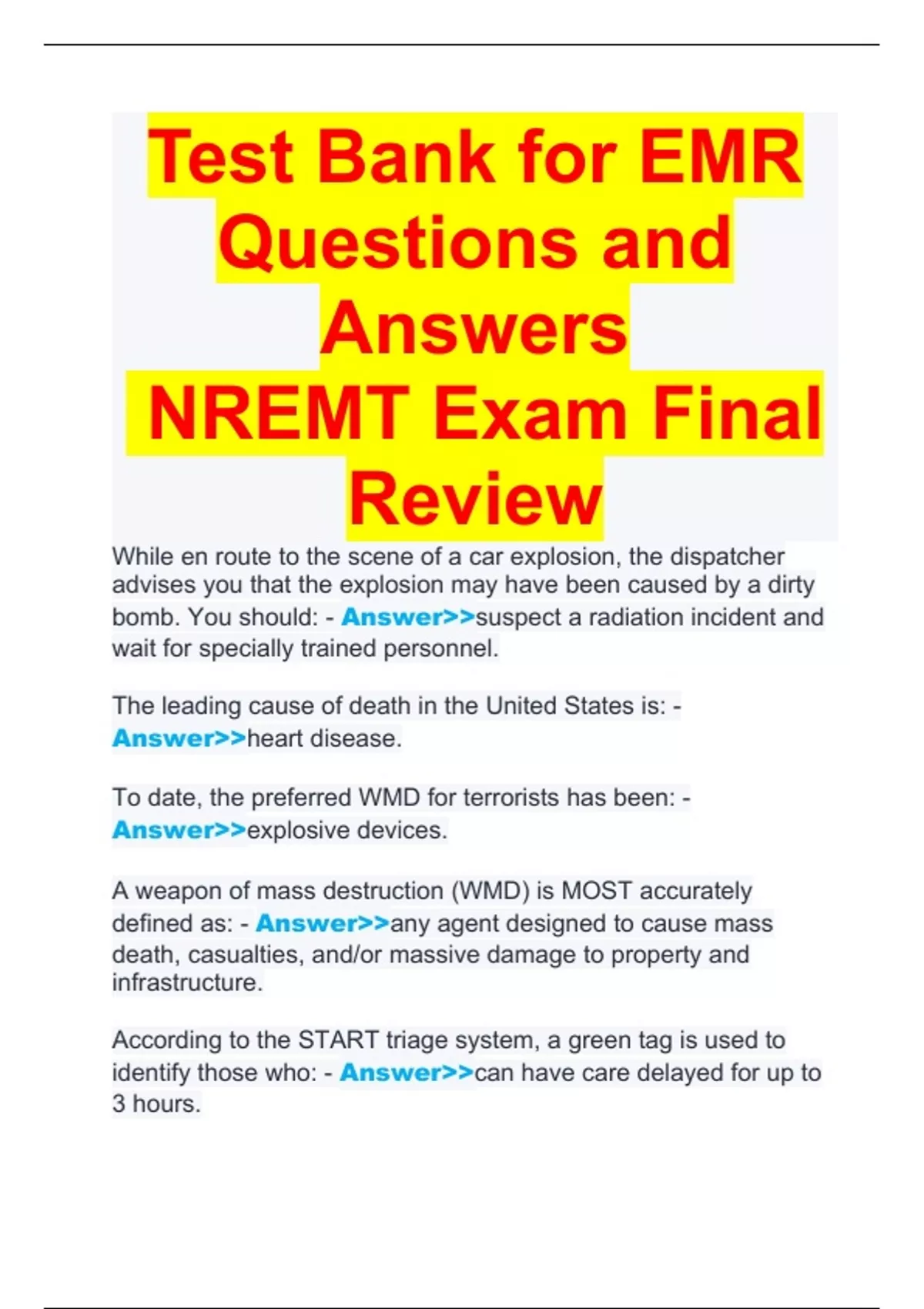 *Test Bank for EMR Questions and Answers NREMT Exam Final Review