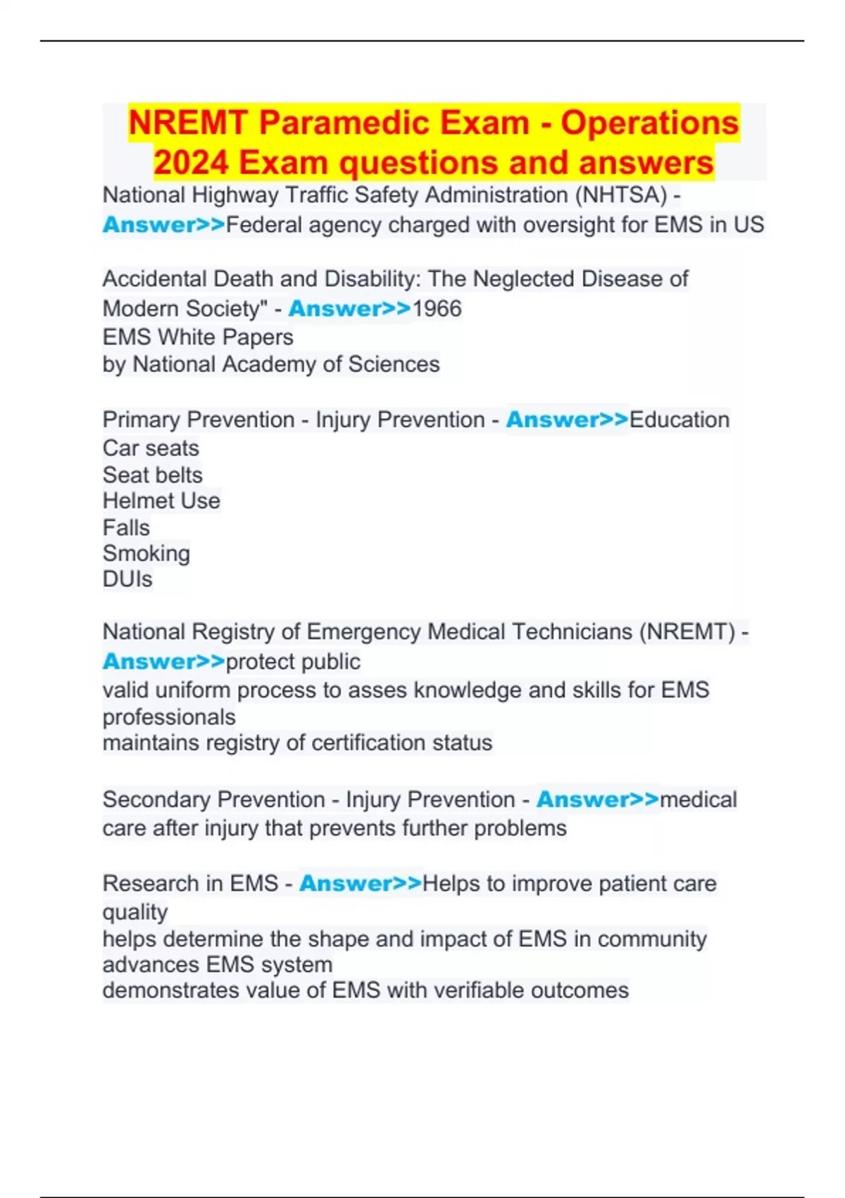 NREMT Paramedic Exam - Operations 2024 Exam questions and answers