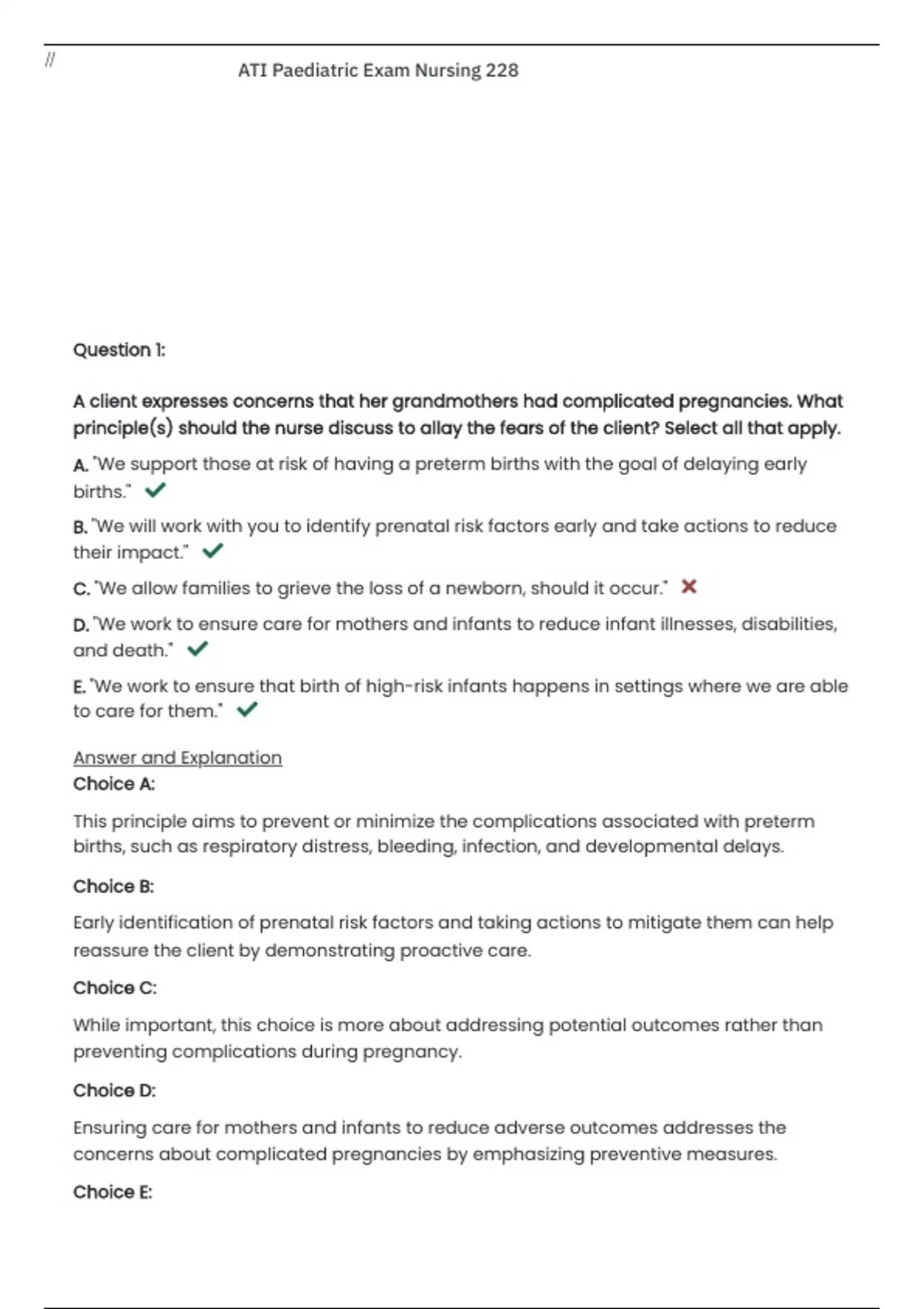 ATI Paediatric Exam Nursing 228 Questions and Verified Answers with Rationales