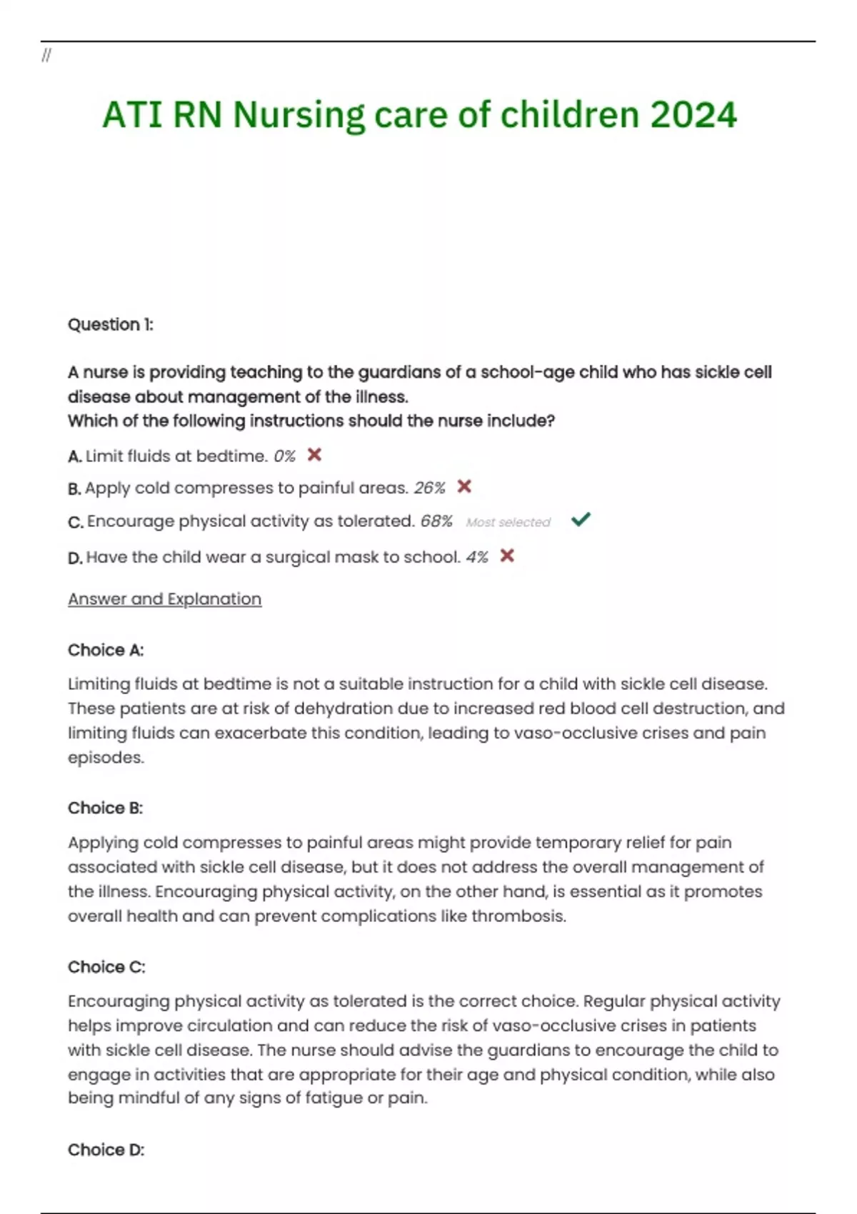 ATI RN Nursing care of children Questions and Verified Answers with Rationales