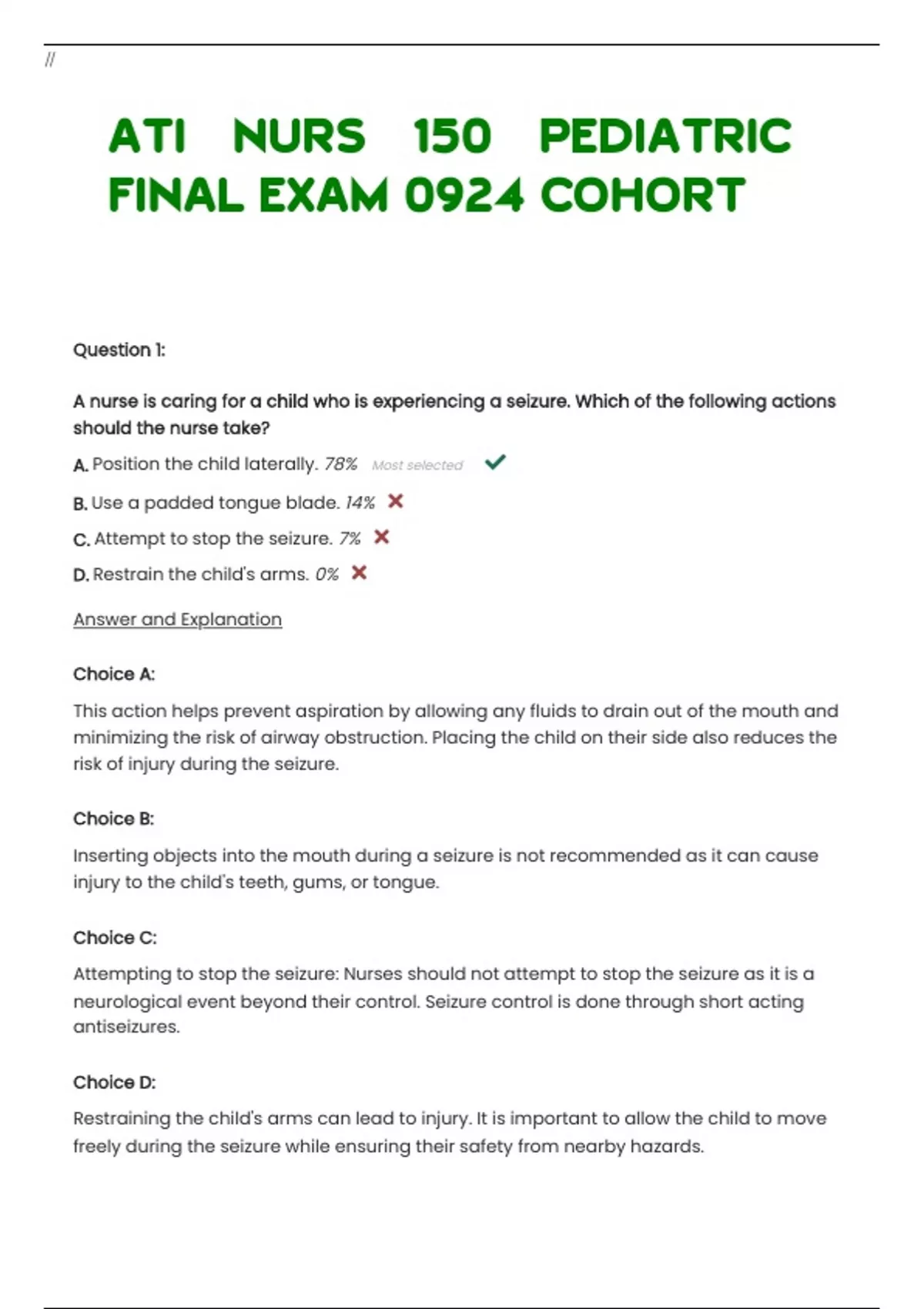 ATI NURS 150 PEDIATRIC FINAL EXAM 0924 COHORT Questions and Verified Answers with Rationales