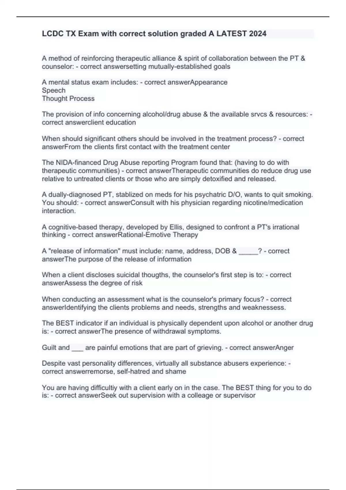 LCDC TX Exam with correct solution graded A LATEST 2024LCDC TX Exam with correct solution graded A LATEST 2024