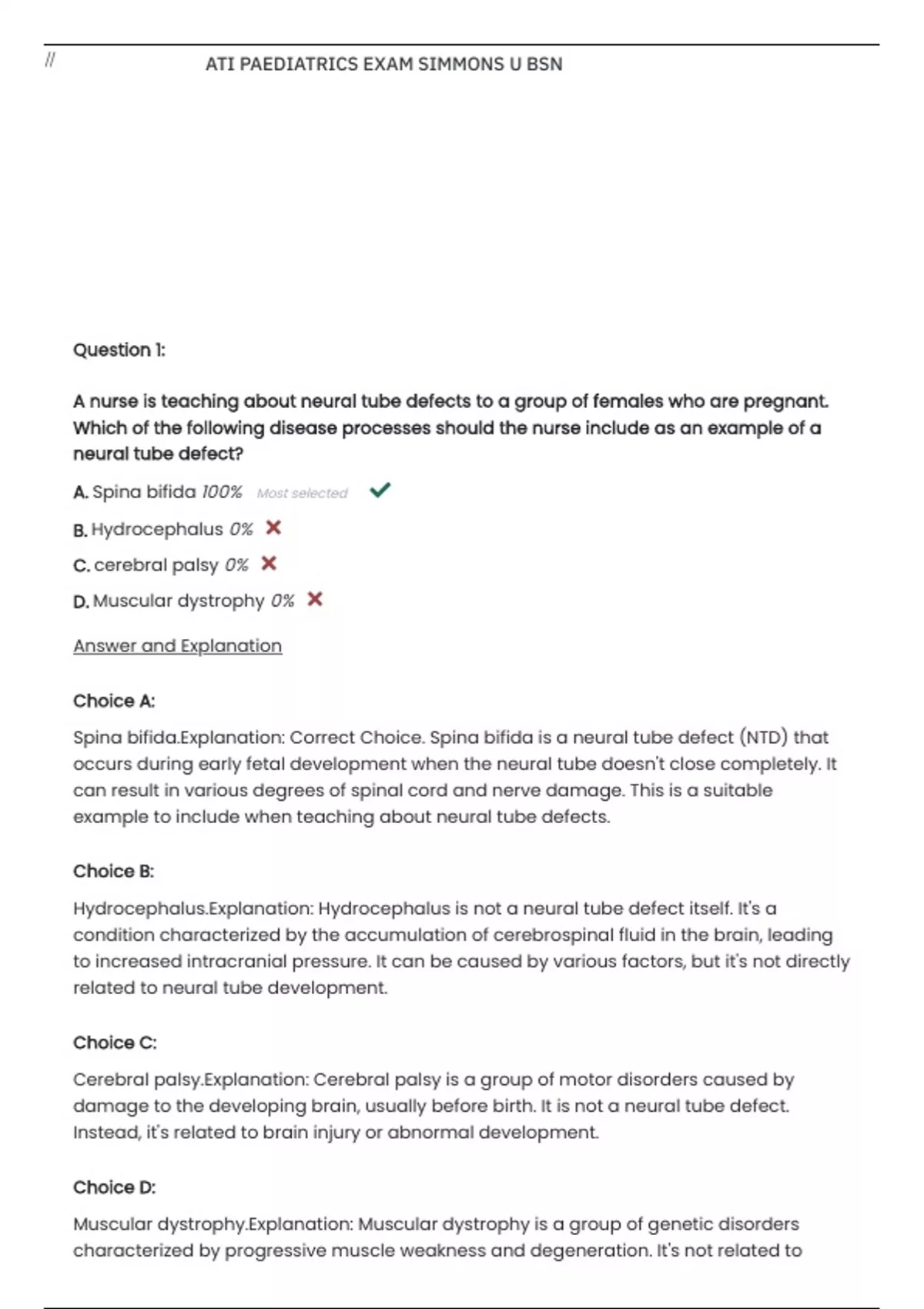 ATI PAEDIATRICS EXAM SIMMONS U BSN Questions and Verified Answers with Rationales