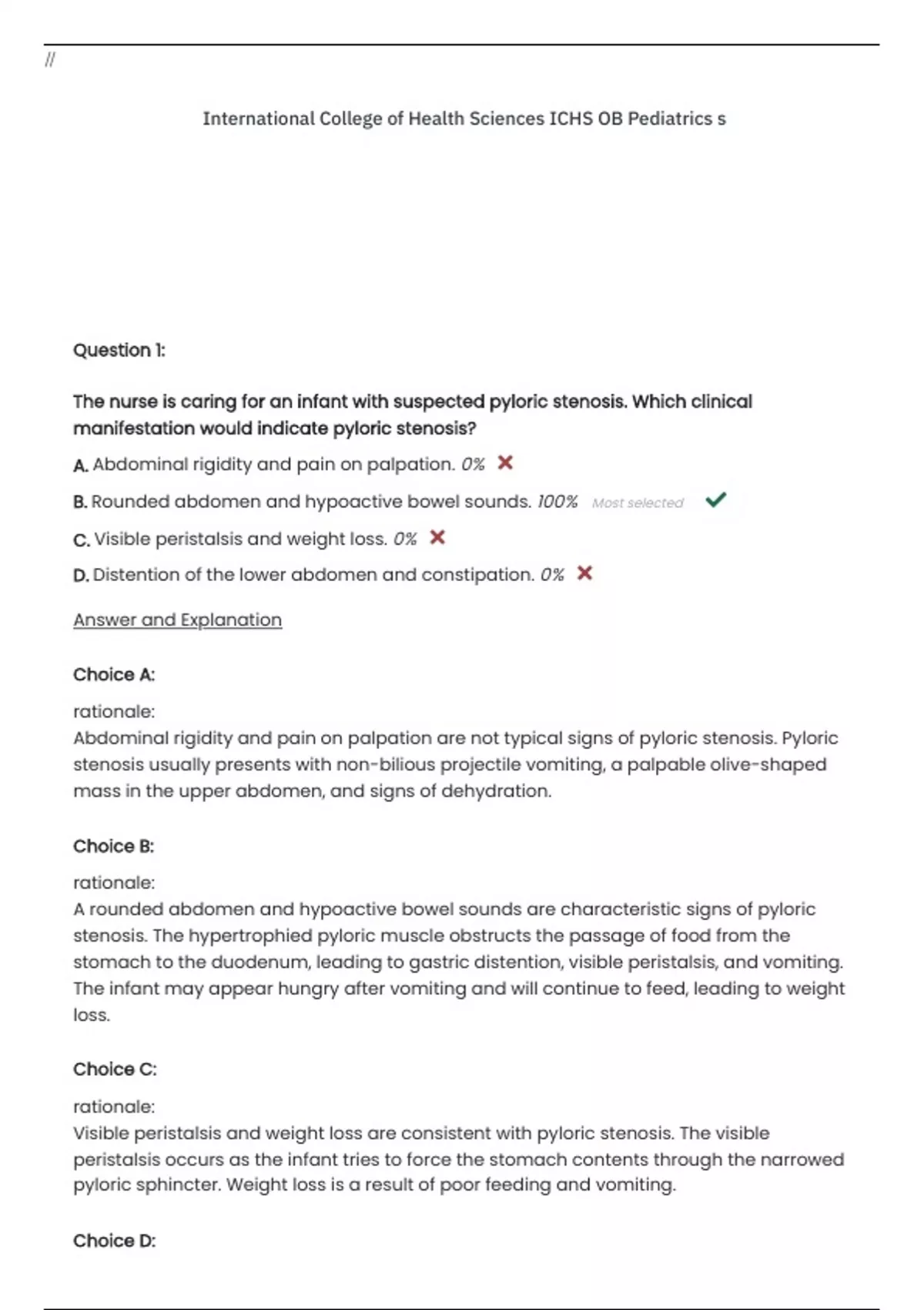 pyloric sphincter. Weight loss is a result of poor feeding and vomiting.