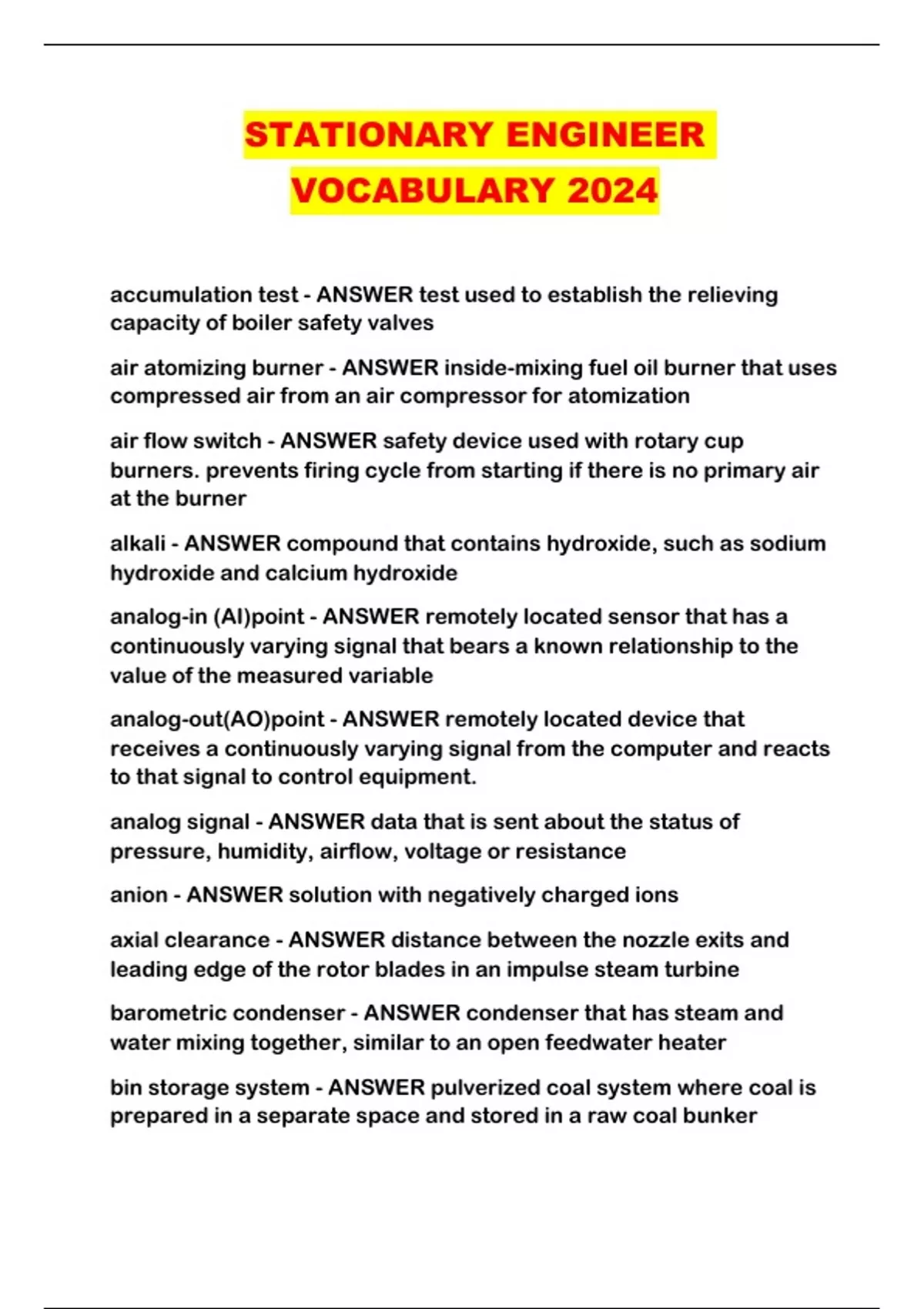STATIONARY ENGINEER VOCABULARY 2024...