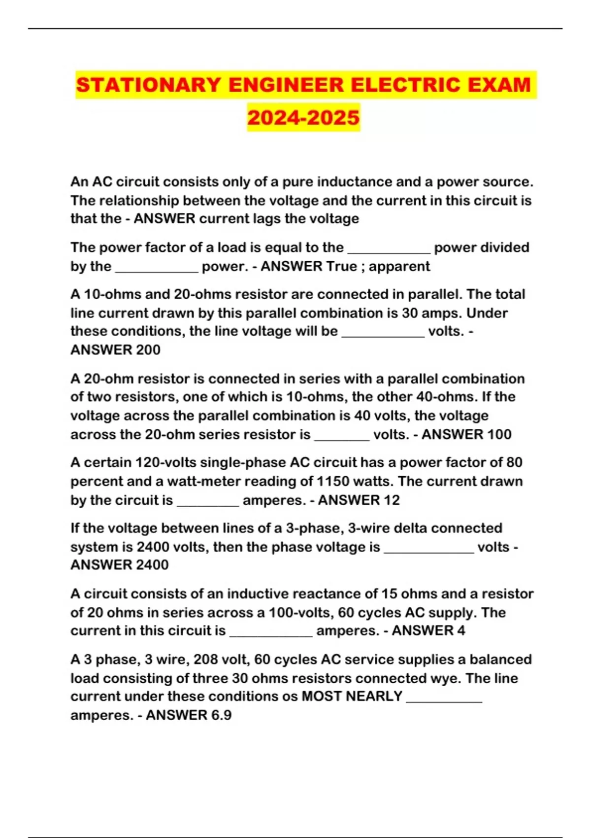 STATIONARY ENGINEER ELECTRIC EXAM ...