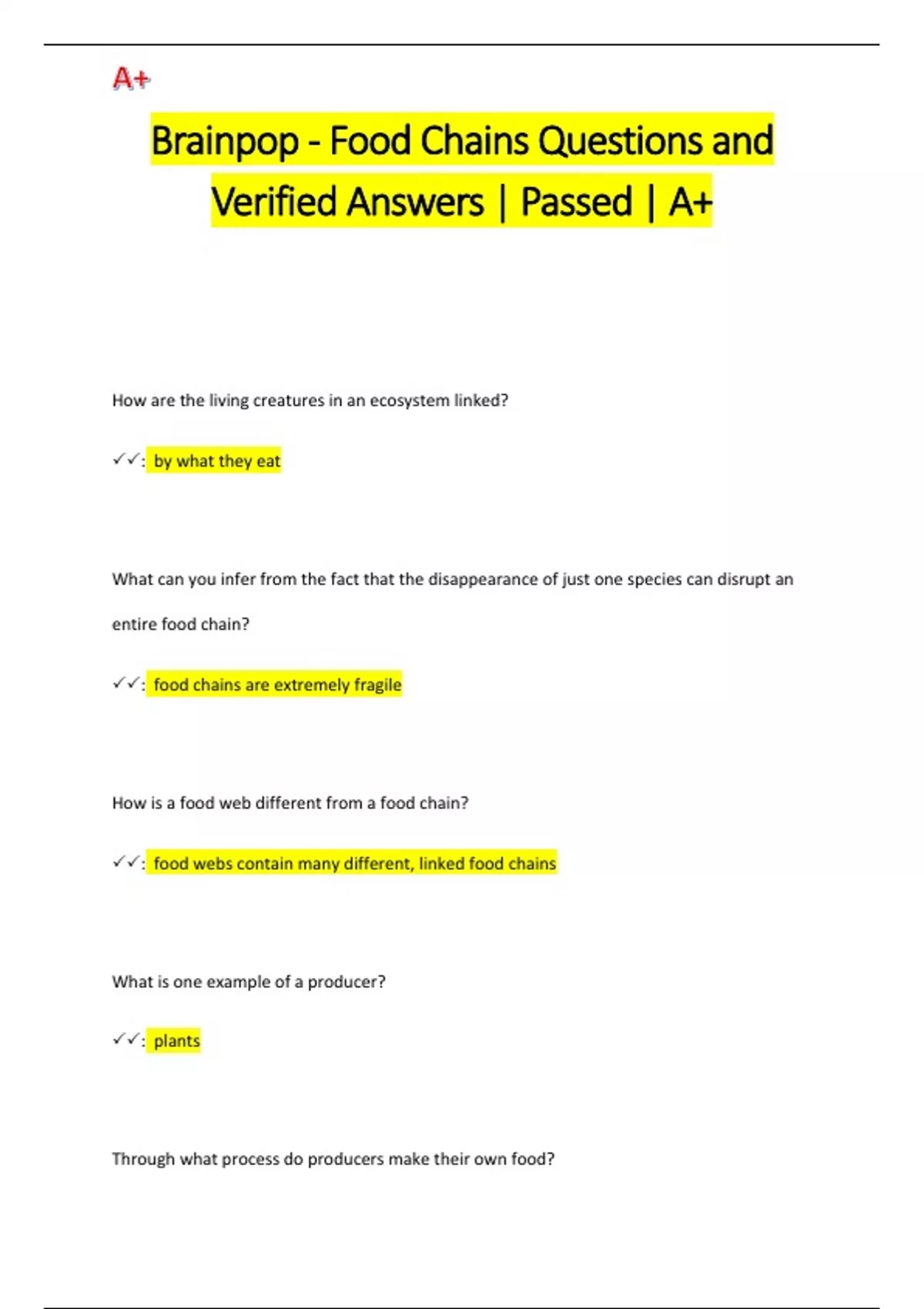 Brainpop - Food Chains Questions and Verified Answers | Passed | A+