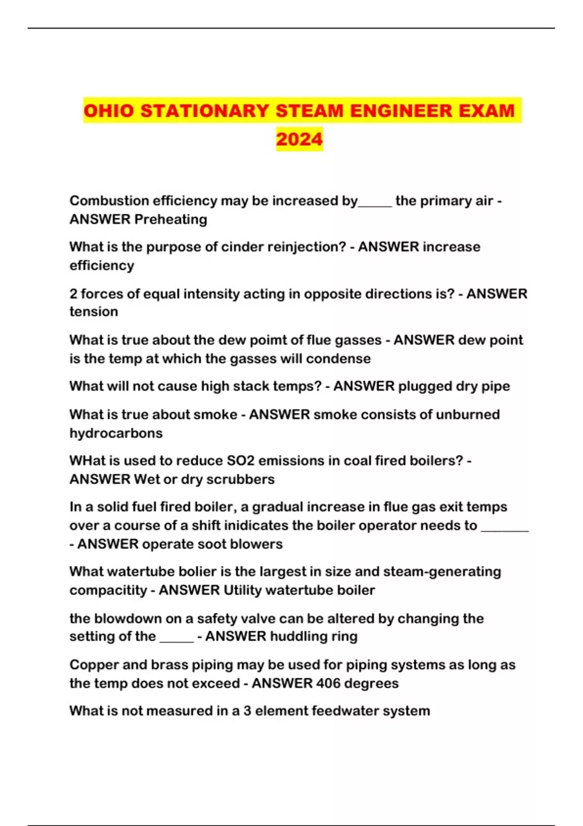 OHIO STATIONARY STEAM ENGINEER EXAM 2024...