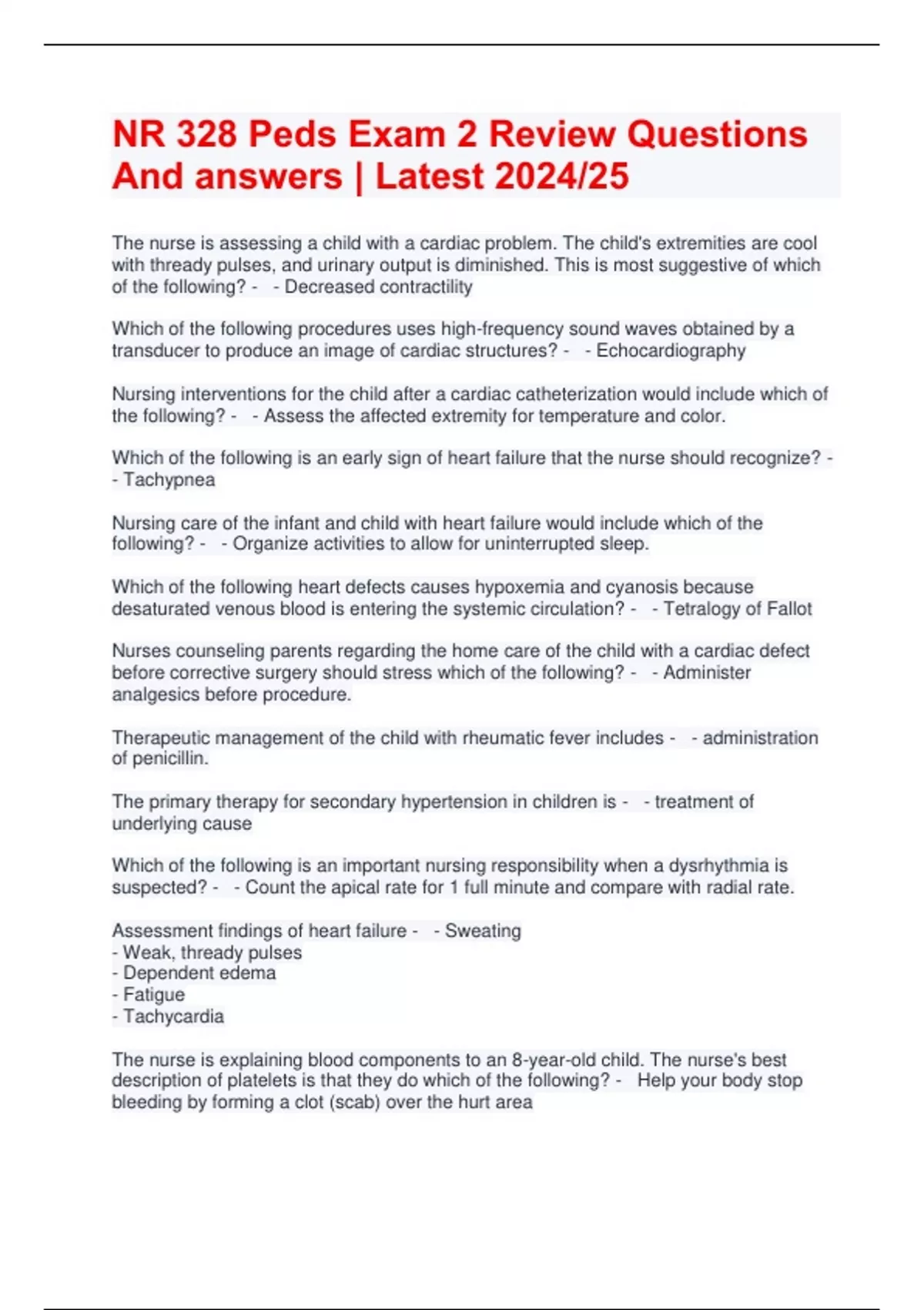 NR 328 Peds Exam 2 Review Questions And answers | Latest 2024/25