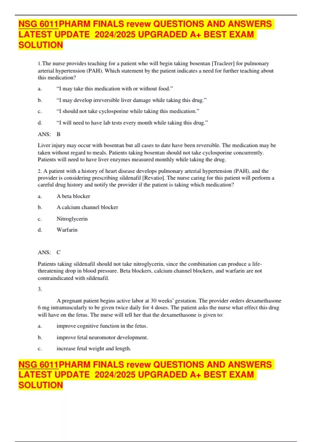 NSG 6011PHARM FINALS revew QUESTIONS AND ANSWERS LATEST UPDATE 2024/2025 UPGRADED A+ BEST EXAM SOLUTION