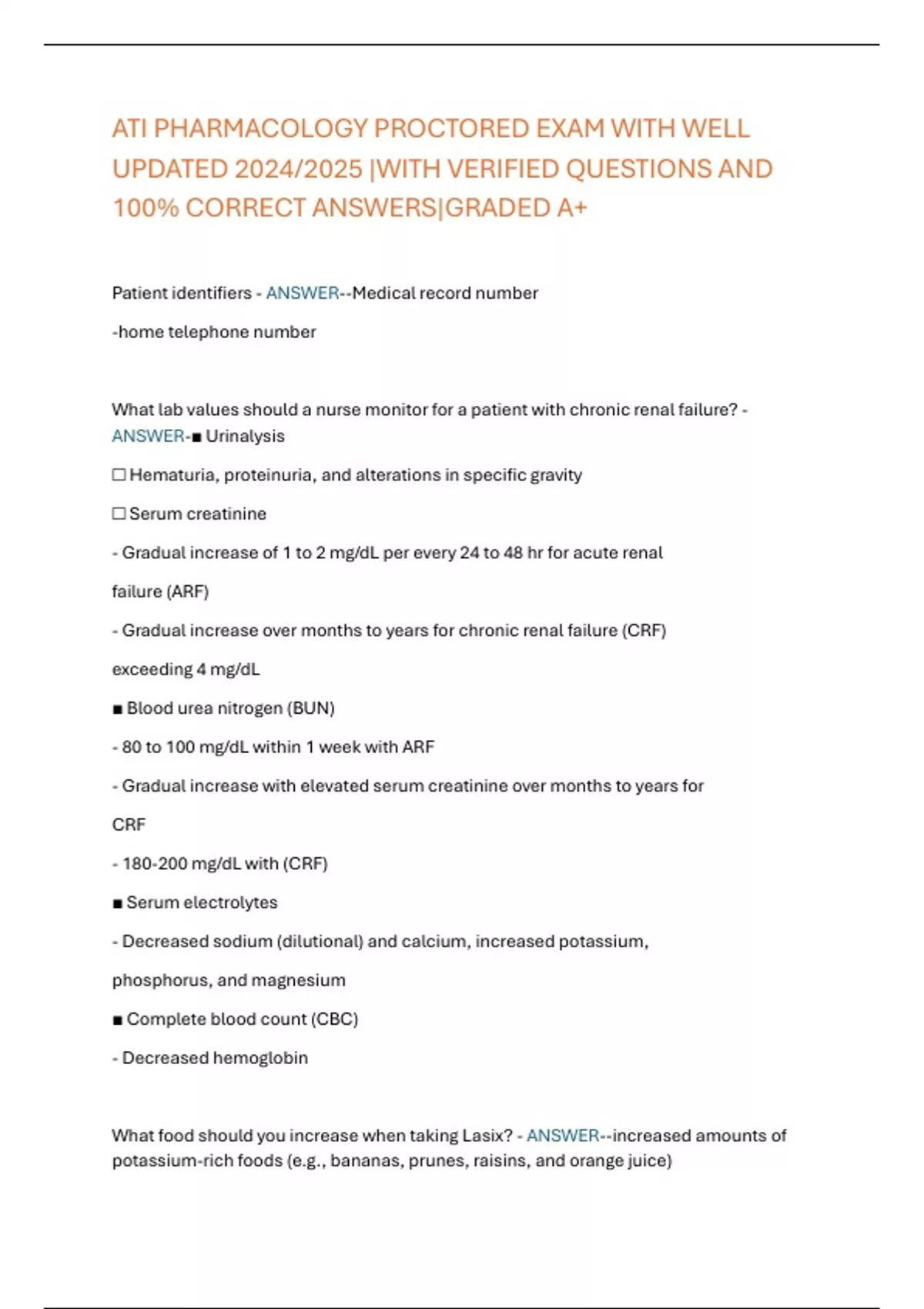 ATI PHARMACOLOGY PROCTORED EXAM WITH WELL UPDATED 2024