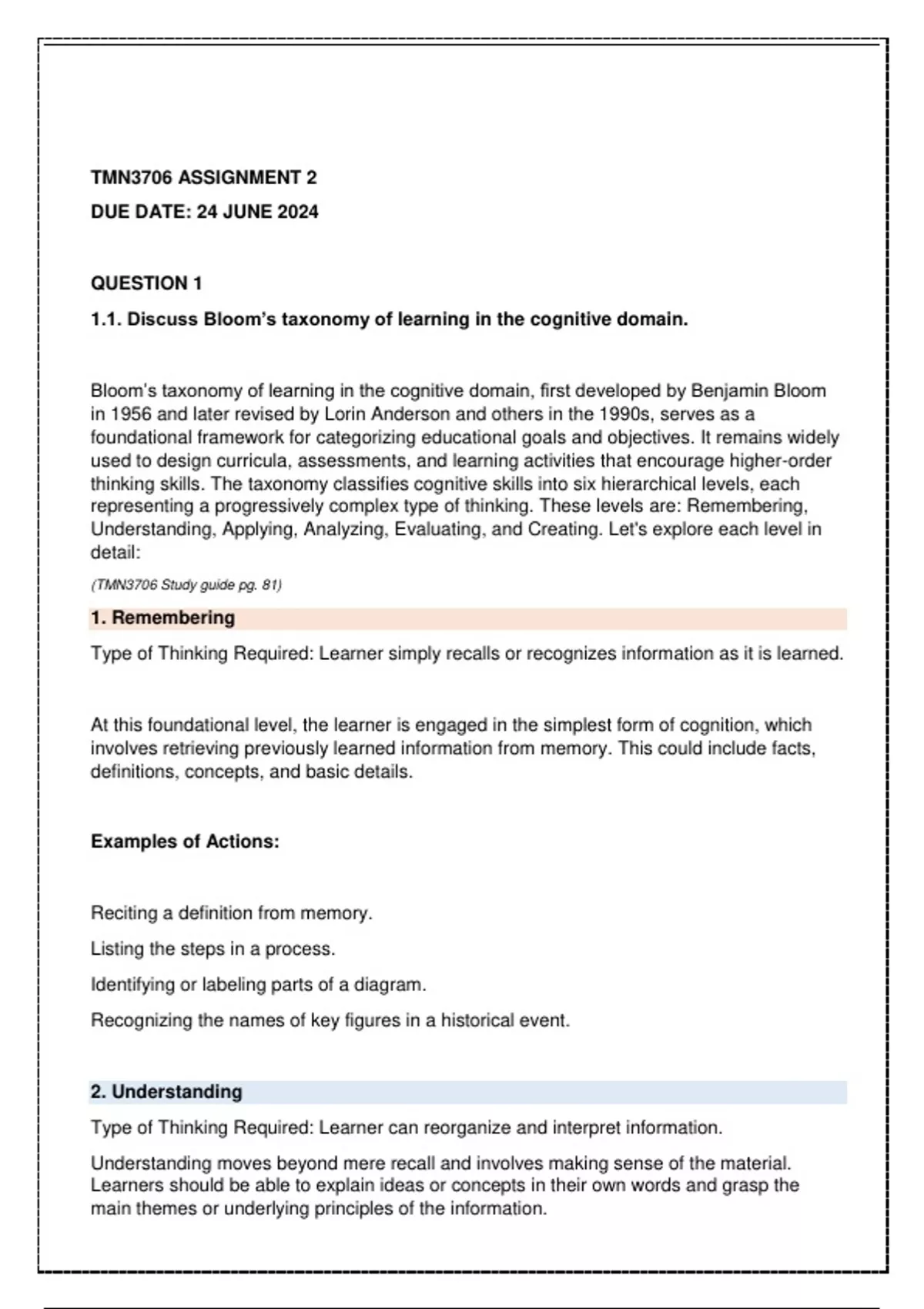 1.1. Discuss Bloom’s taxonomy of learning in the cognitive domain.
