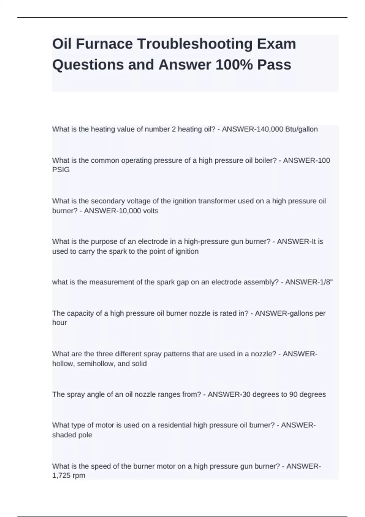 Oil Furnace Troubleshooting Exam Questions and Answer 100% Pass